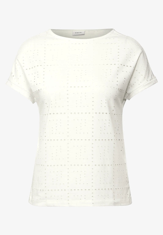 Casual T-Shirt with A Perforated Design, White