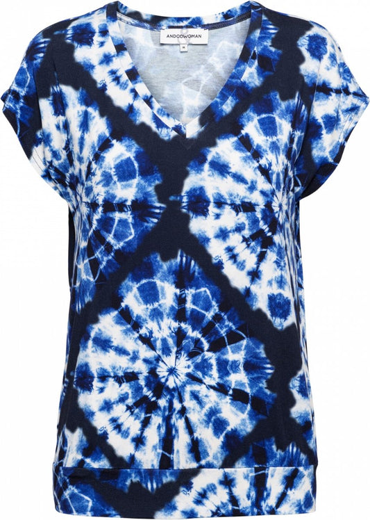 T-Shirt with Geometric Print and 3/4 Sleeves