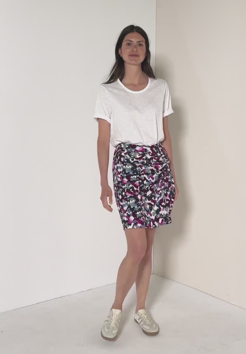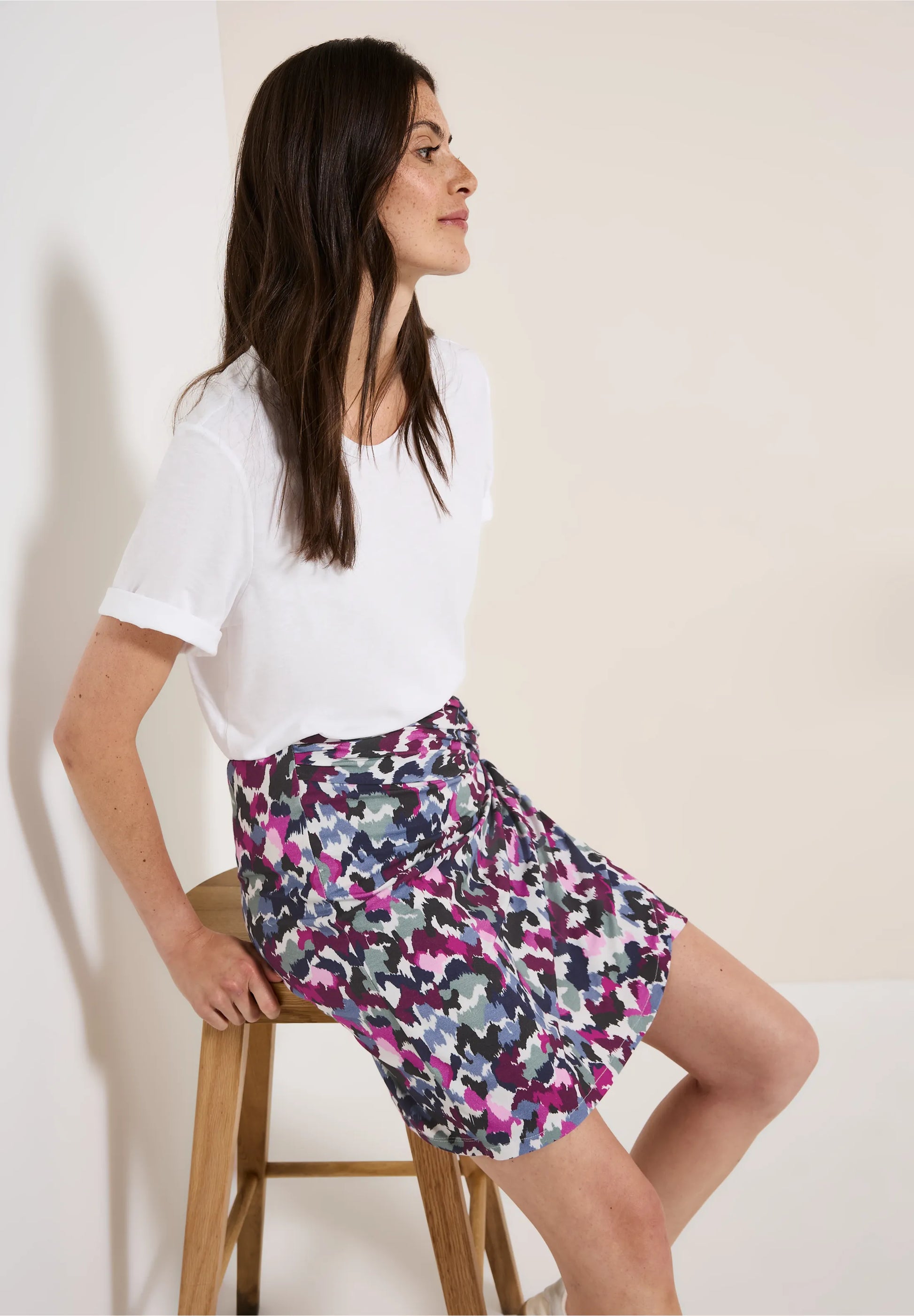 This short skort by CECIL for women combines the look of a skirt with the comfort of a shorts. The wrap detail at the front and the elastic waistband ensure a flattering fit and comfortable wearing comfort. The graphic pattern completes the look, while the viscose blend with stretch for a soft feel.