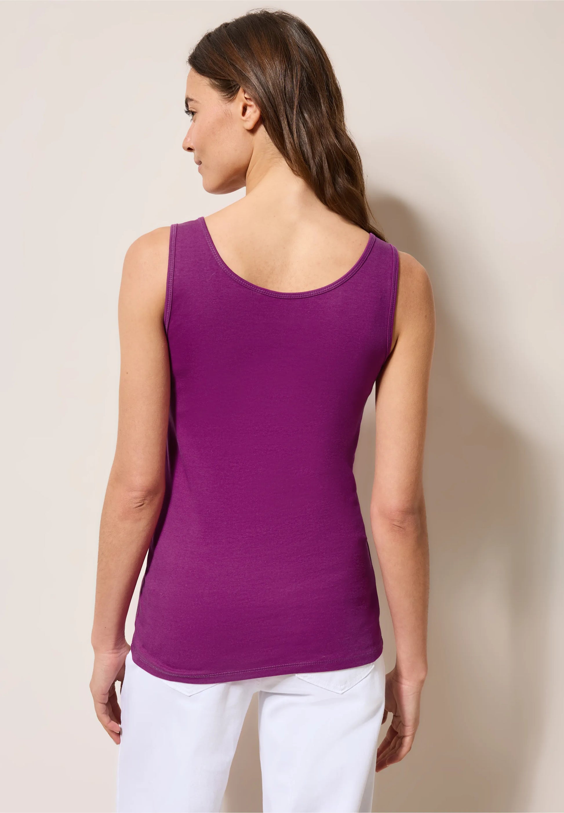 The basic top by CECIL for women is a versatile must-have. With a round neckline and a sleeveless fit, the strap top in Linda style is ideal as a single or for underwear. The pure cotton ensures a pleasant wearing comfort.