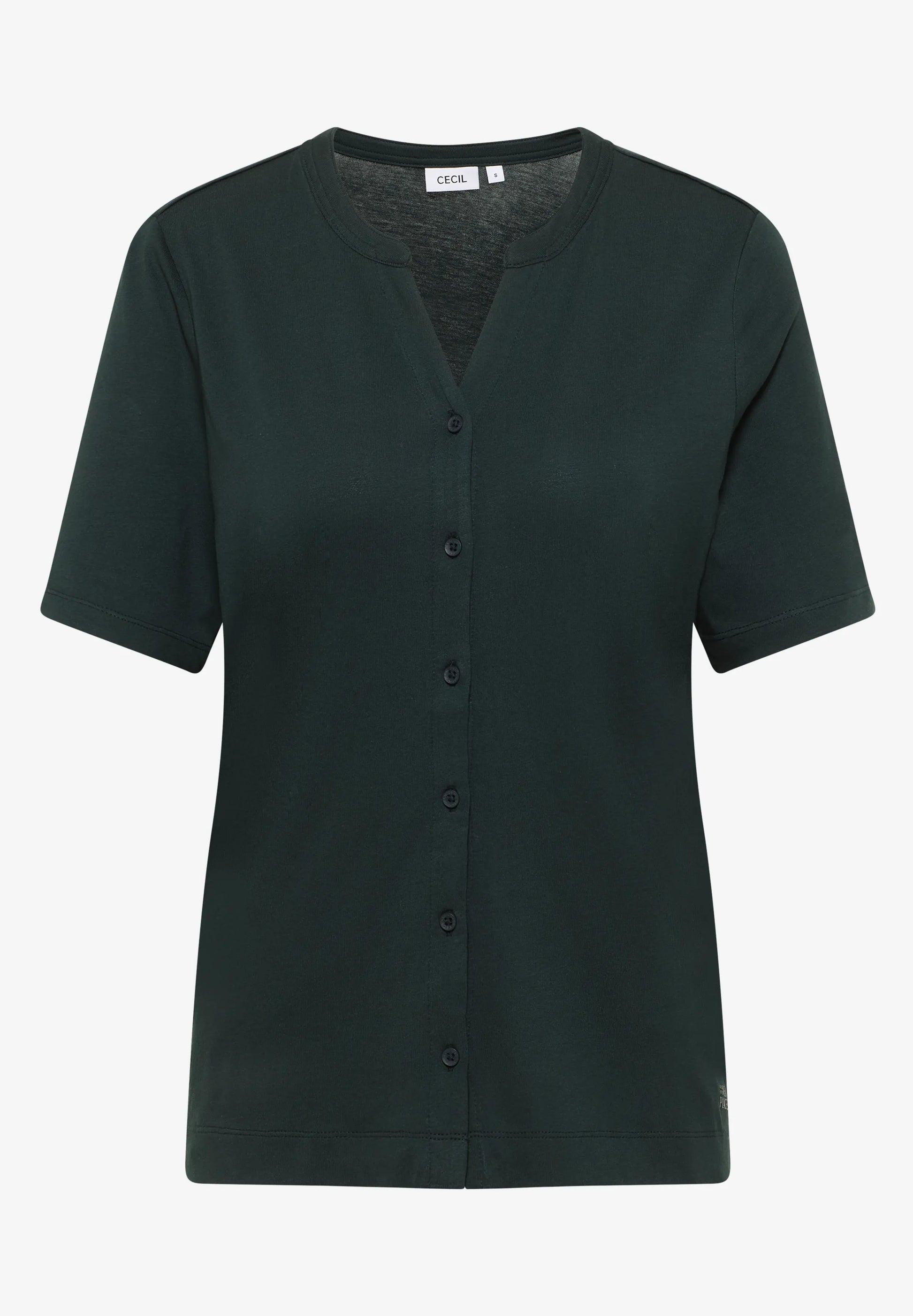 A soft and casual jersey top by CECIL, designed with short sleeves, a split neckline and a full button front. The lightweight stretch fabric ensures all-day comfort, while the relaxed fit and clean lines create an easy, feminine look. Perfect for everyday styling, wear it with jeans, trousers or layered under a cardigan.
