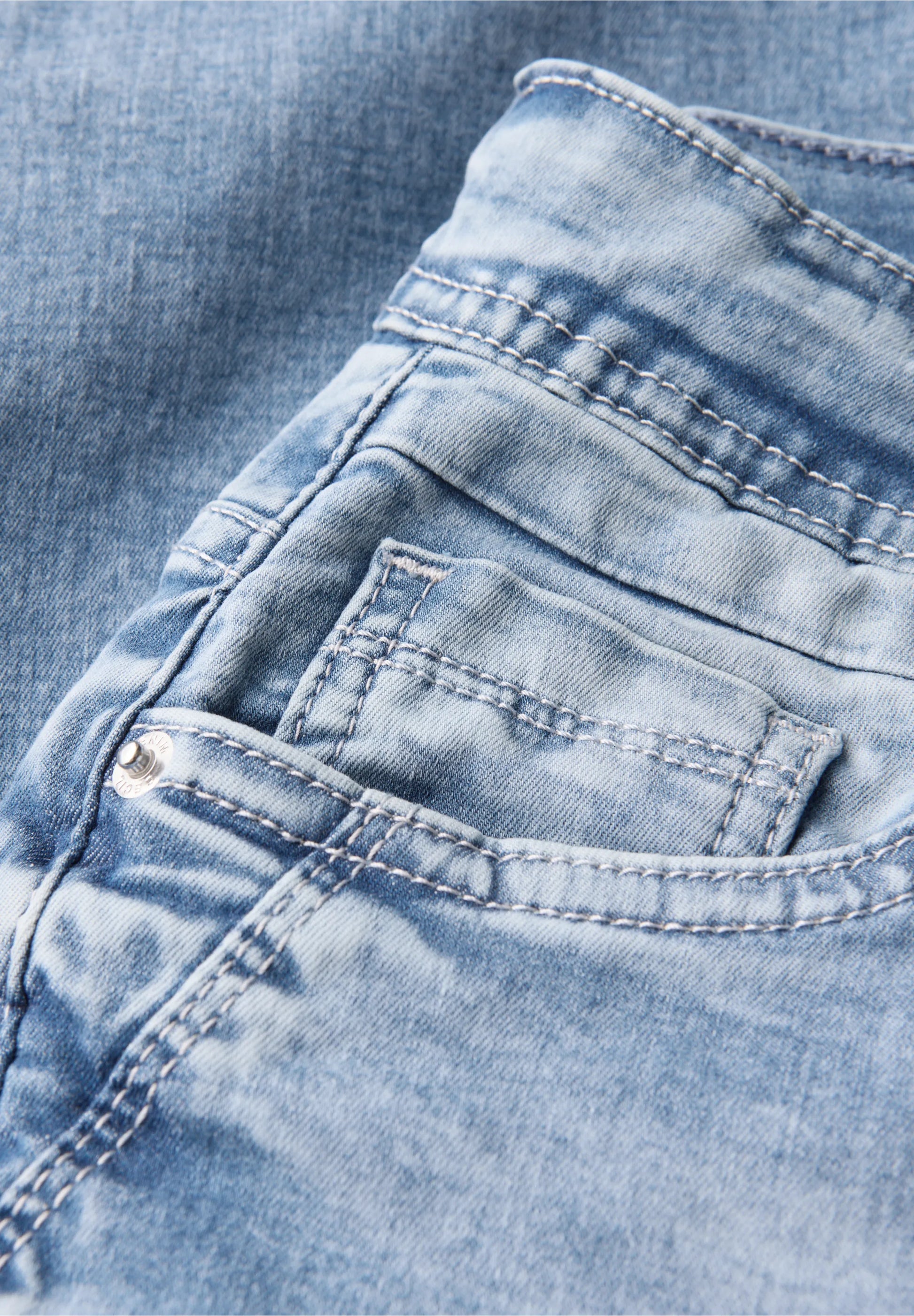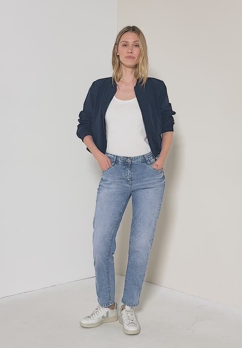 These jeans by CECIL feature a relaxed casual fit – with straight legs, a light blue wash and a stylish turn-up detail for a laid-back look. The classic 5-pocket design and added stretch ensure all-day comfort and versatility, making them a timeless favourite for everyday wear.