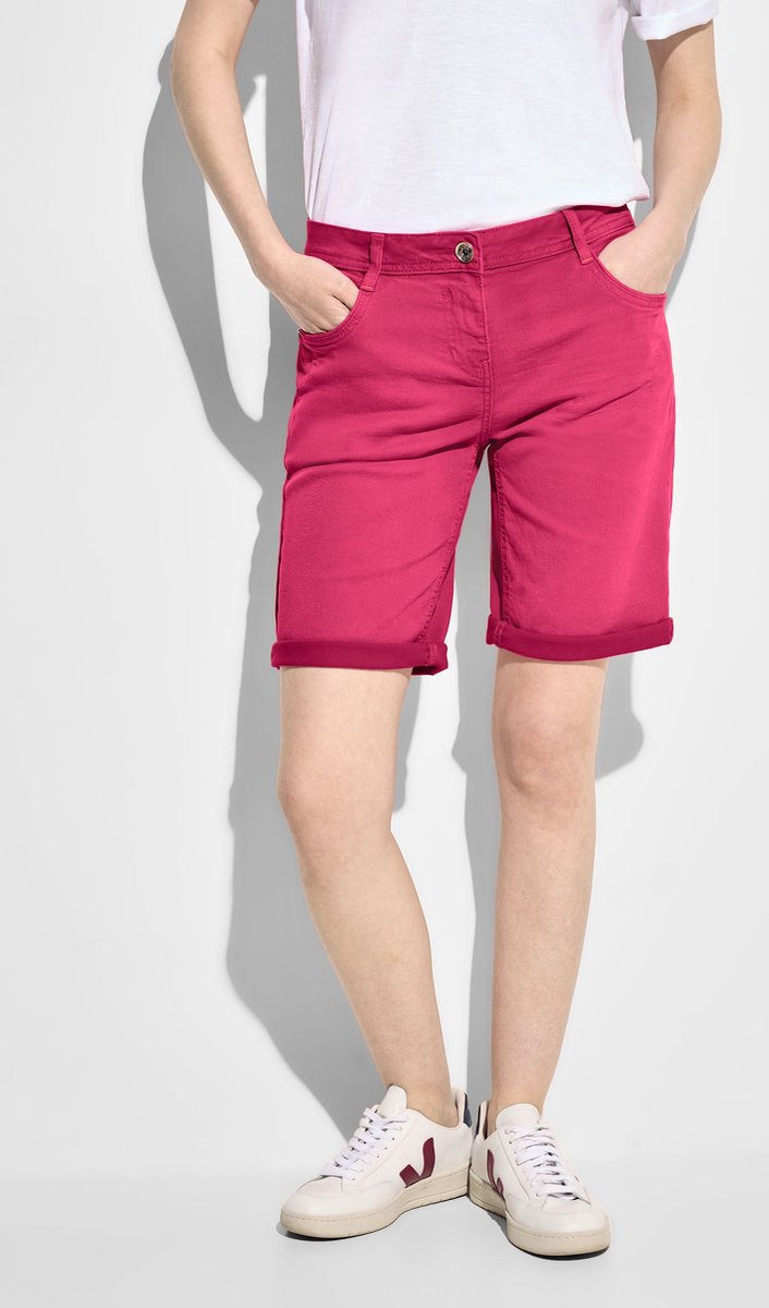 The Scarlett style denim shorts by CECIL for women offer a relaxed and summery look. With their casual cut and mid-rise fit, they ensure comfort and ease of movement. The fresh pink used wash adds a vibrant touch, while the rolled hems enhance the laid-back vibe. Decorative stitching on the pockets adds subtle detail, making these shorts a stylish choice for warm days.