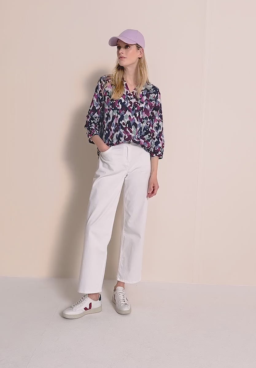 This blouse by CECIL for women features a striking graphic print and a decorative button placket at the slit neckline. With 3/4 sleeves and soft pure cotton fabric, it offers both a stylish look and all-day comfort.