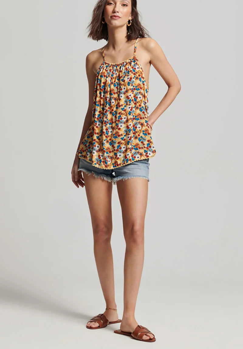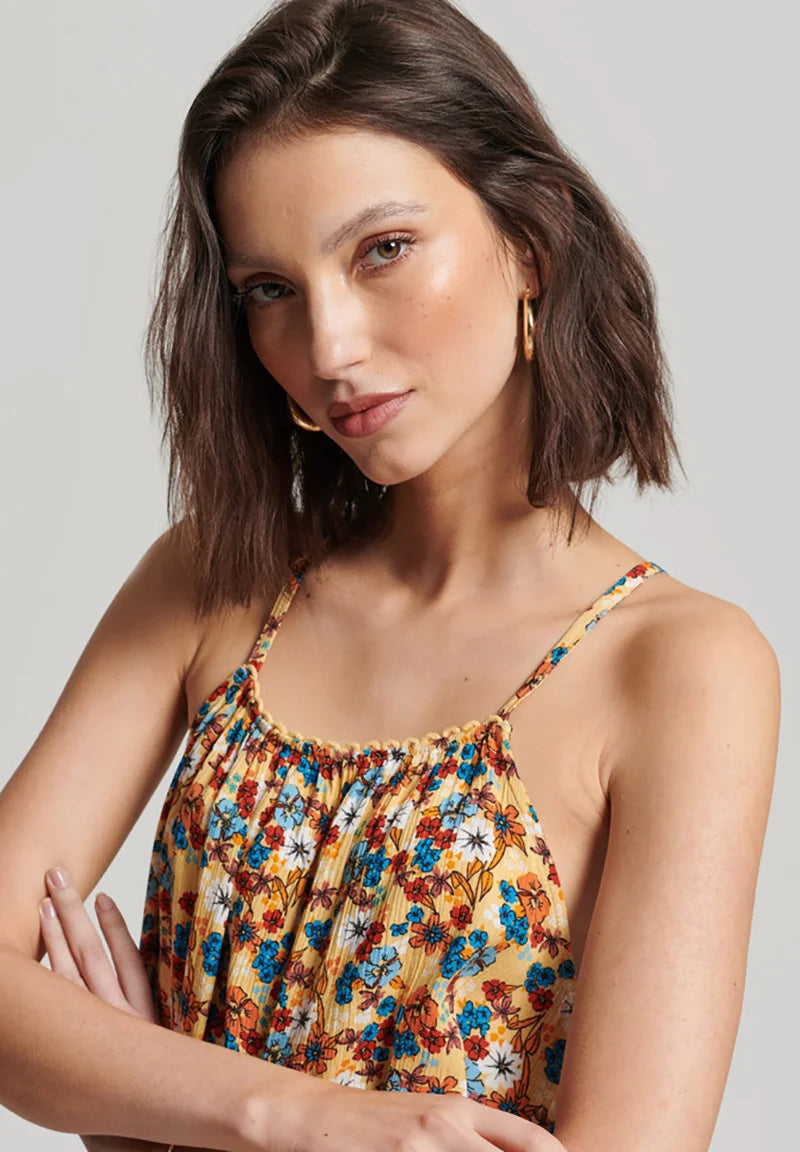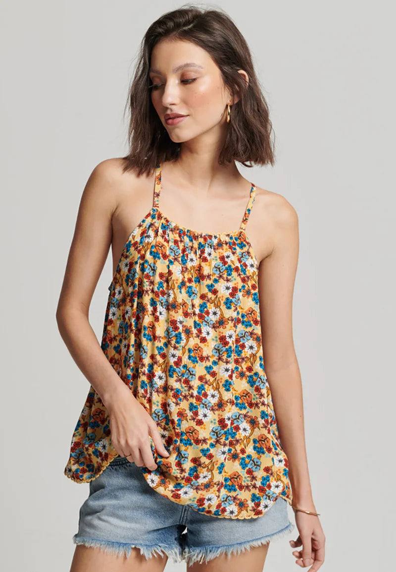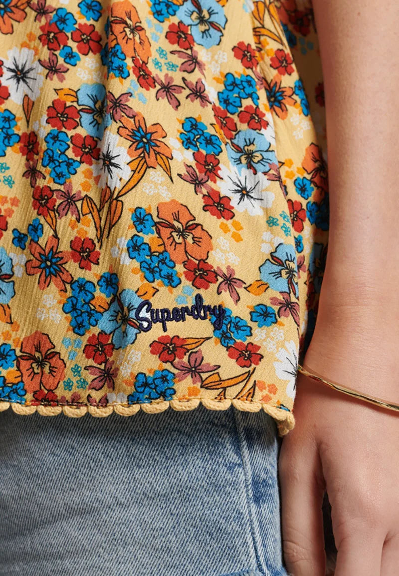 Light, breezy and perfect for sunny days, this halter neck top from Superdry features a playful all-over floral print in vibrant tones of blue, red and white. The gathered neckline and delicate scalloped hem add a feminine touch, while the lightweight fabric ensures comfort in warm weather. Ideal for pairing with shorts, skirts or denim for effortless summer style, whether you're heading to the beach or exploring the city.