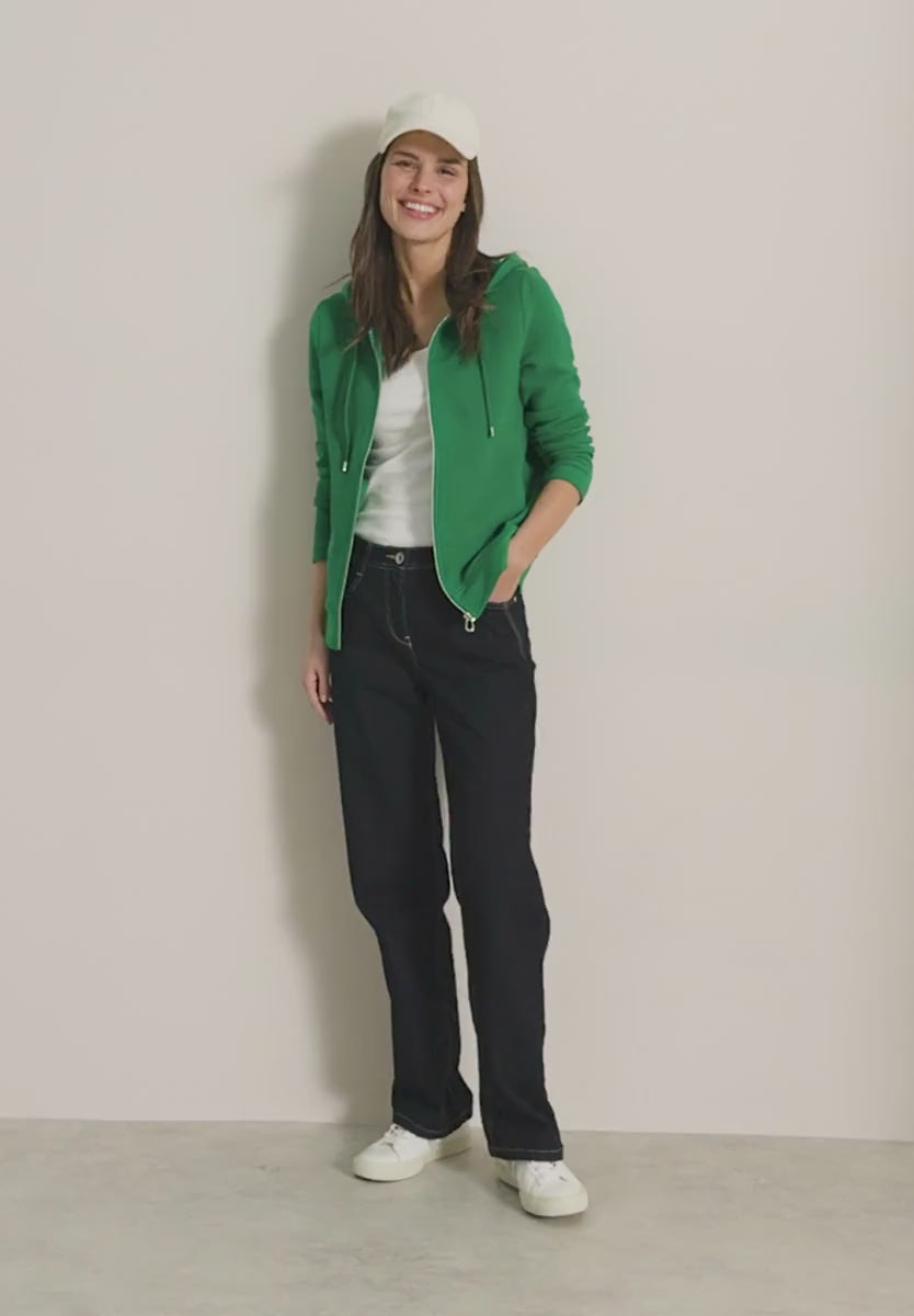The lightweight hooded jacket by CECIL for women scores with its sporty design. A hood with drawstring, long sleeves and side pockets make them functional and comfortable. The cotton mix with stretch content offers you high wearing comfort.