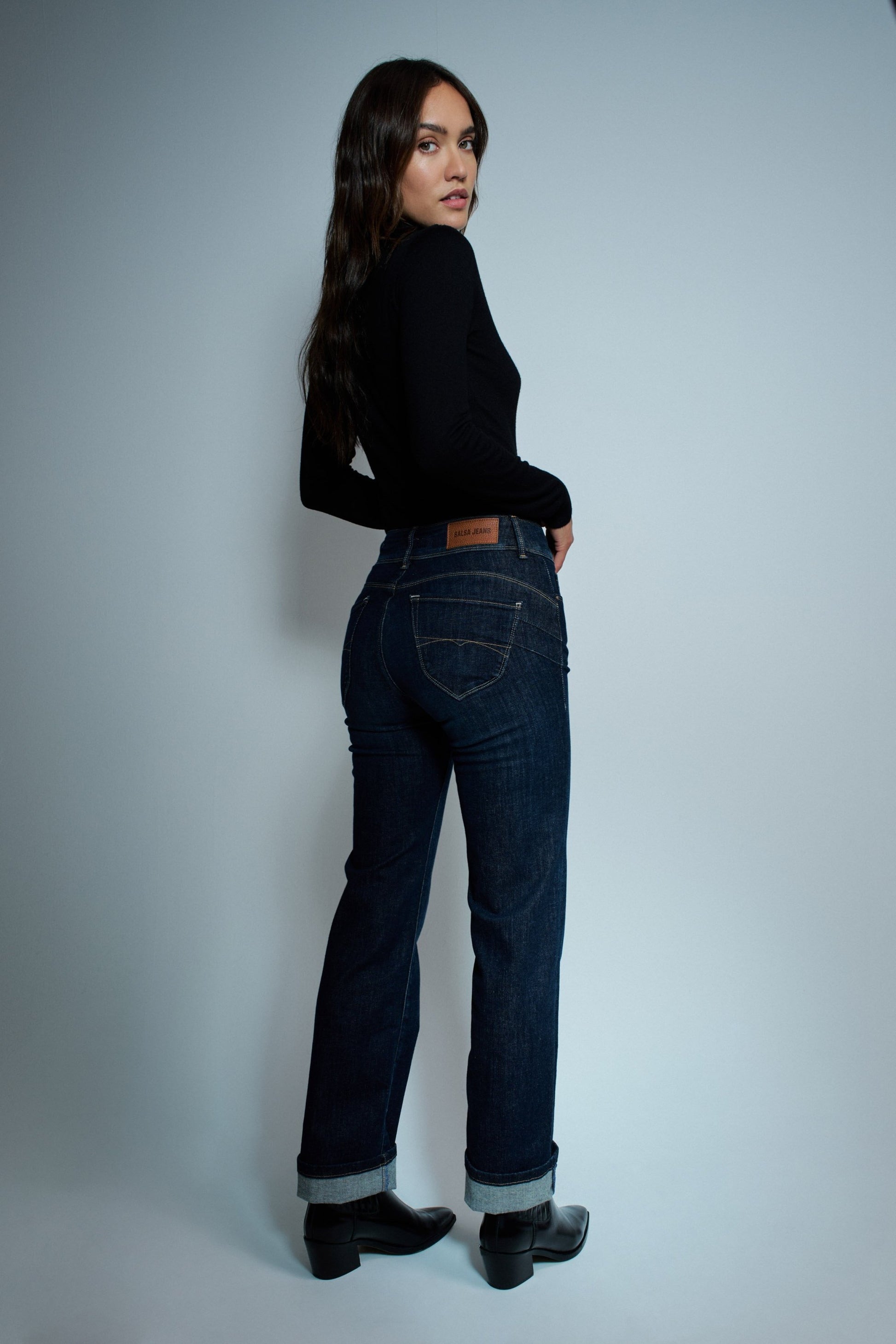 The Secret Push In jeans, with a medium waist and two buttons, incorporate an internal panel, specially designed to shape your waist with maximum comfort. The two side darts ensure the perfect fit. They are proof that elegance also wears jeans.