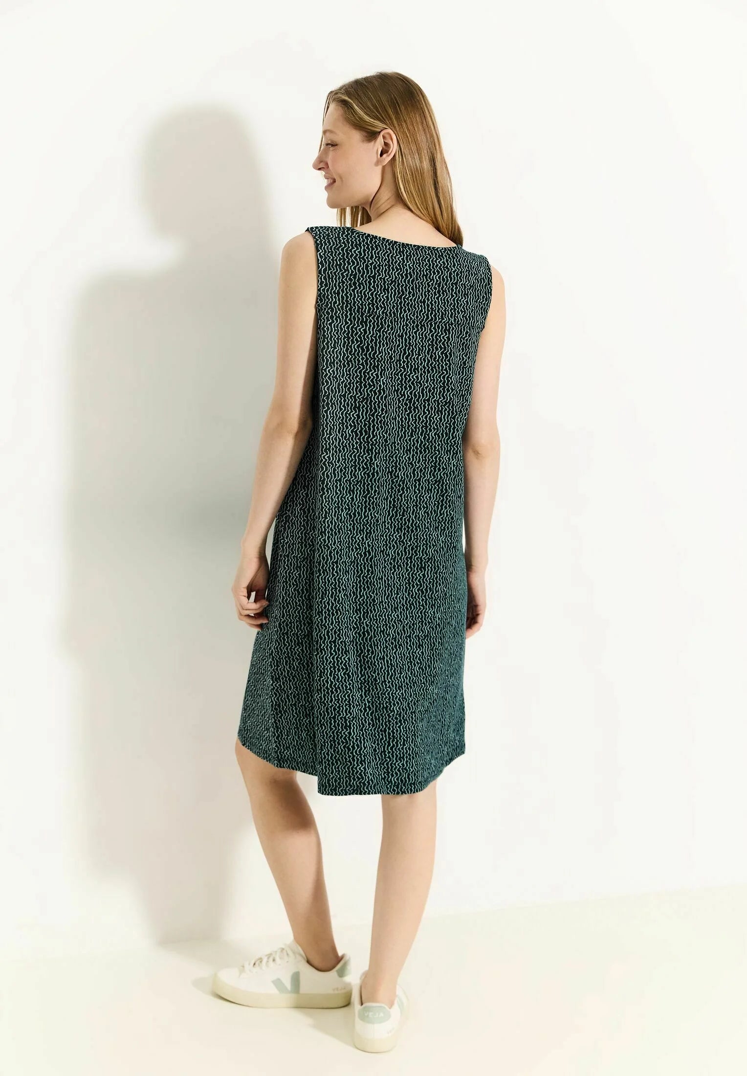 Perfect for everyday use is this CECIL jersey dress with minimal print. It combines sleeveless chic with a discreet round neck slit and impresses with its comfortable jersey quality.