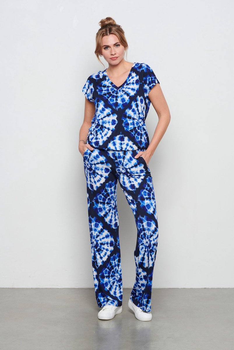 The Lucia top brings a fresh twist to casual dressing with its striking tie-dye design in shades of navy and white. Featuring a soft V-neckline and short flutter sleeves – this jersey top falls slightly bloused thanks to the wide hem band. Made from a comfortable viscose blend, it’s both easy to wear and effortlessly stylish.