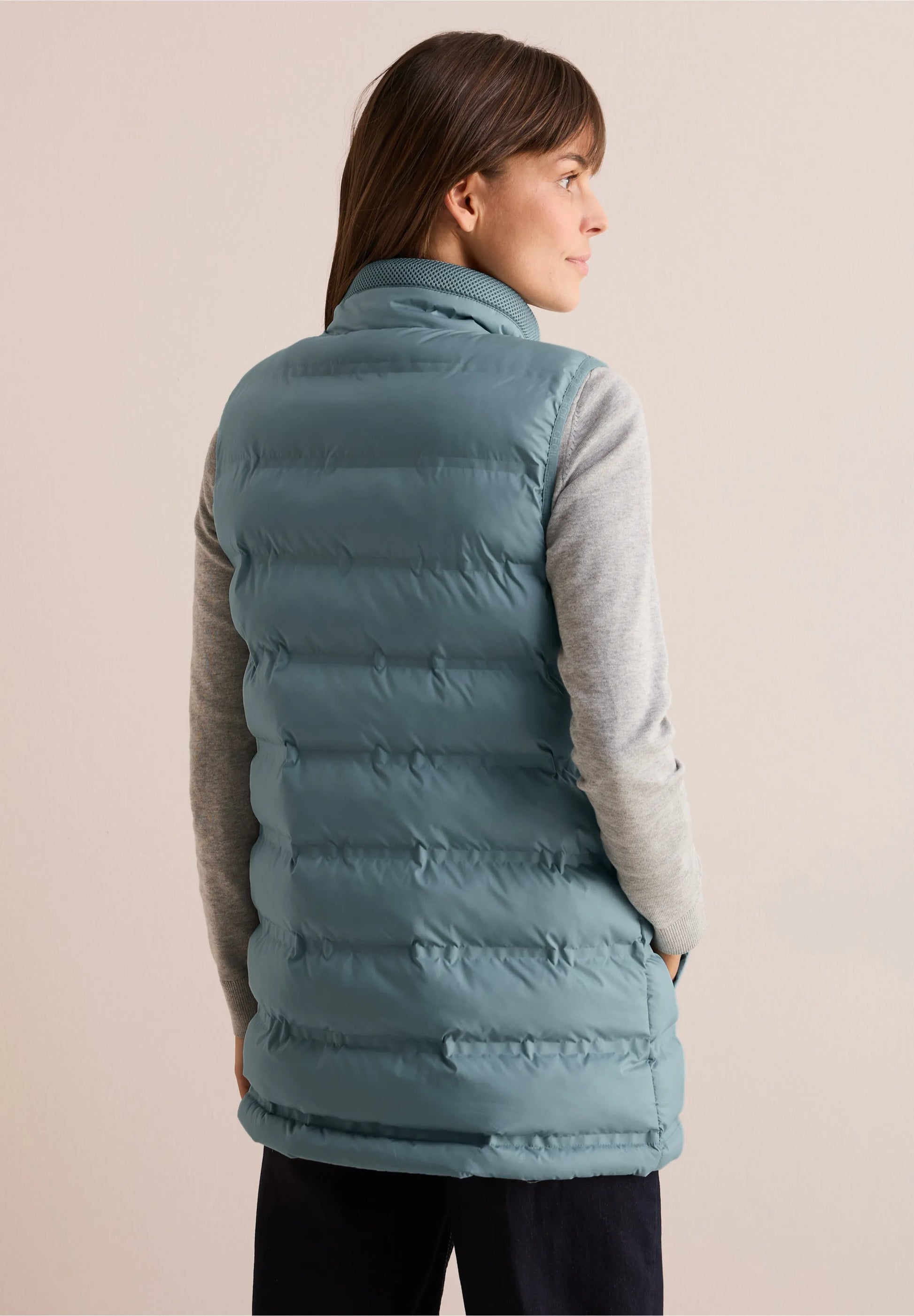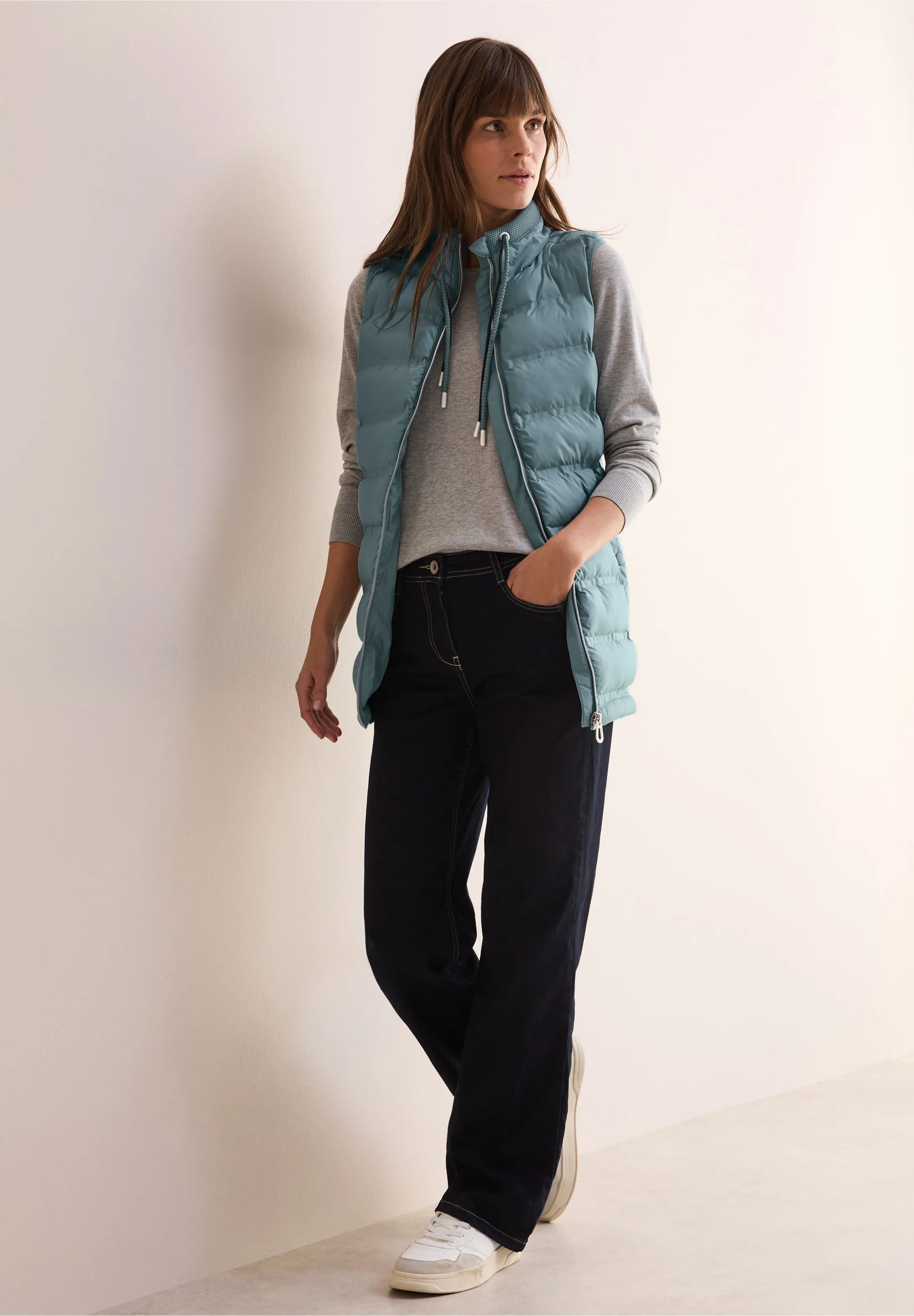 The lined gilet by CECIL for women is the ideal companion for the transitional period. A stand-up collar with drawstring, mesh details and side pockets create a sporty look and set stylish accents. Thanks to the comfortable lining, the vest keeps you pleasantly warm.