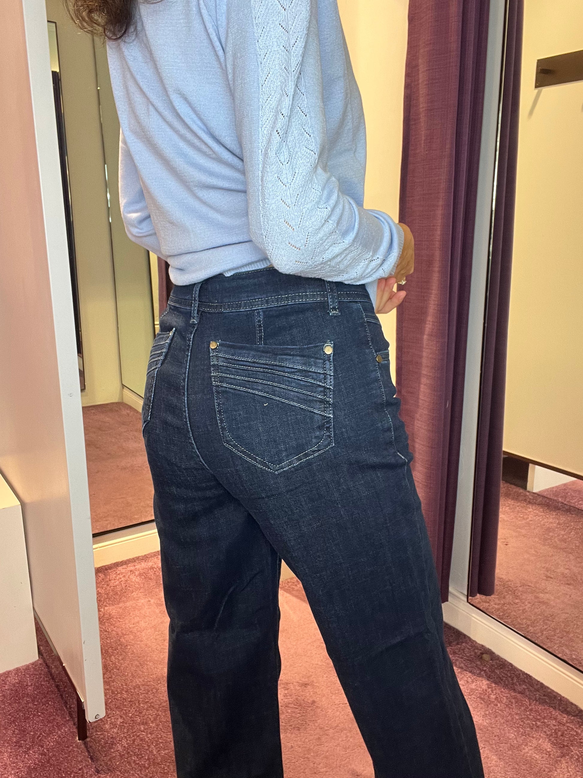 Introducing our new Napoli Wide Leg Denim Trouser, perfect for making a statement. With a 27" leg, these trousers offer both stretch and comfort. Plus, the front and back pocket details add extra flair. Must-have statement piece!