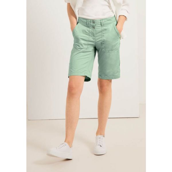 The New York bermuda shorts by CECIL are a practical and stylish choice for summer. With a mid-rise waist and longer leg length, they offer all-day comfort and coverage. Functional details like the double-button fastening, large patch pockets, and decorative stitching give them a sporty touch. Made from a lightweight, slightly stretchy fabric, these shorts are ideal for everyday wear or active outings.