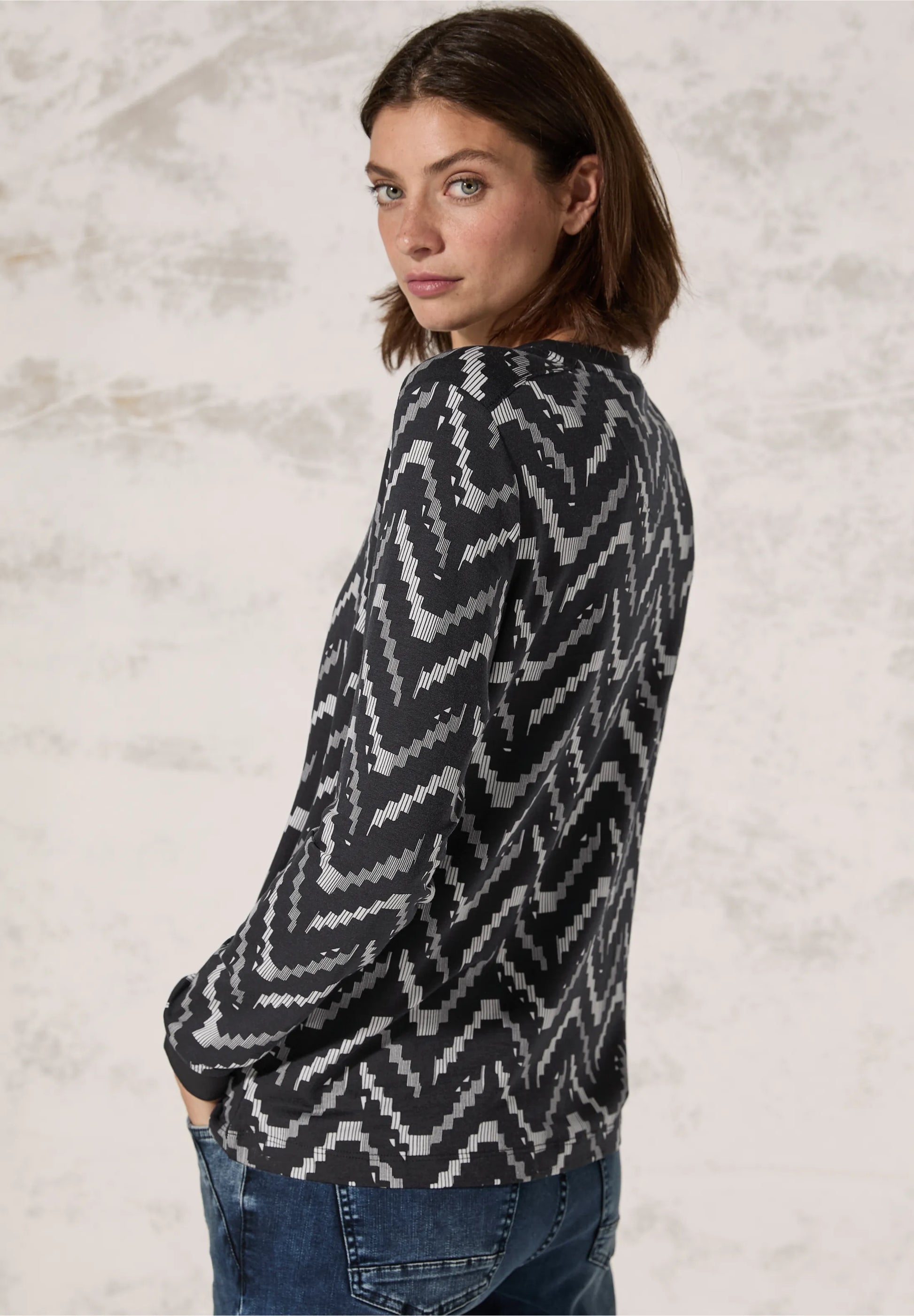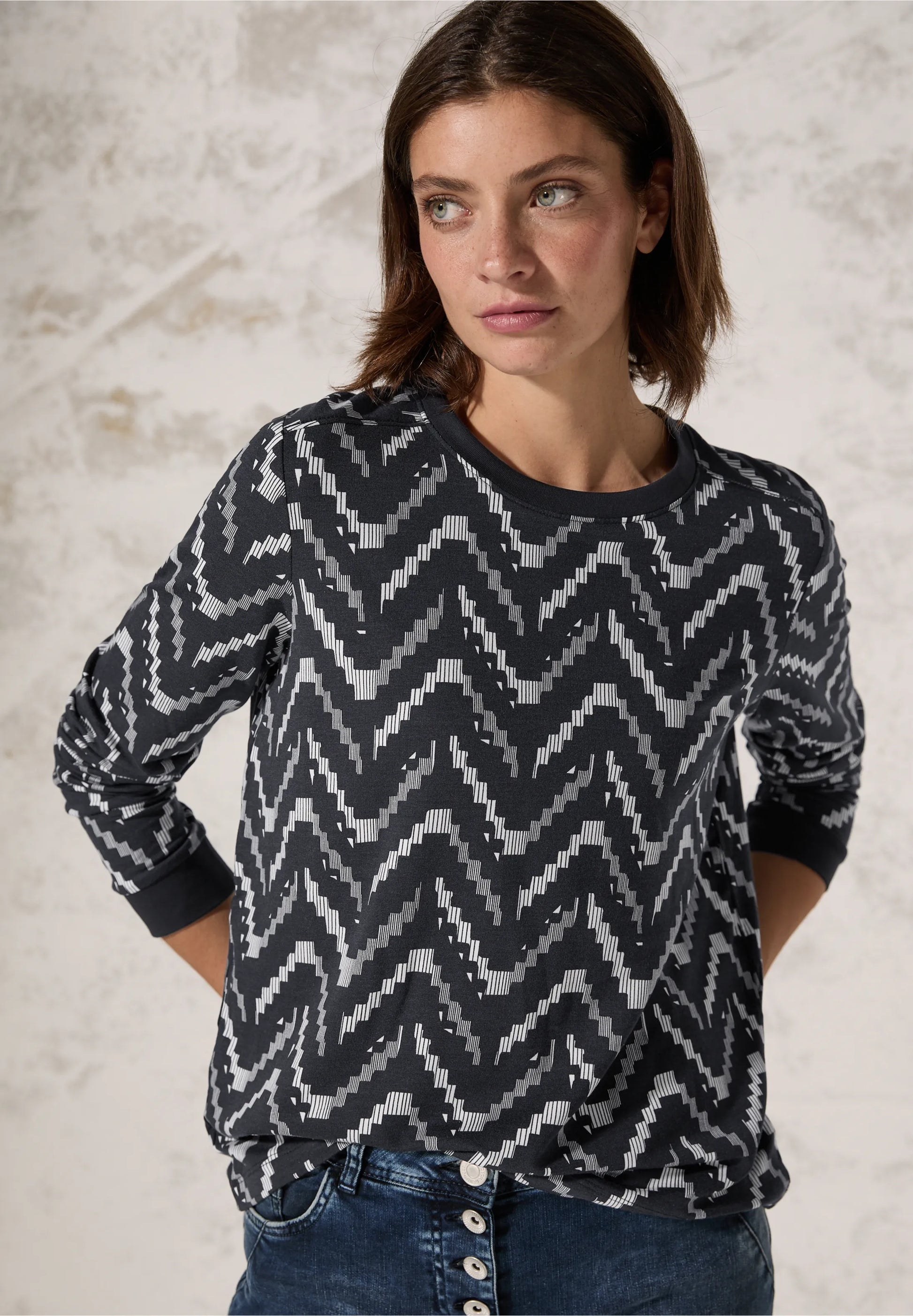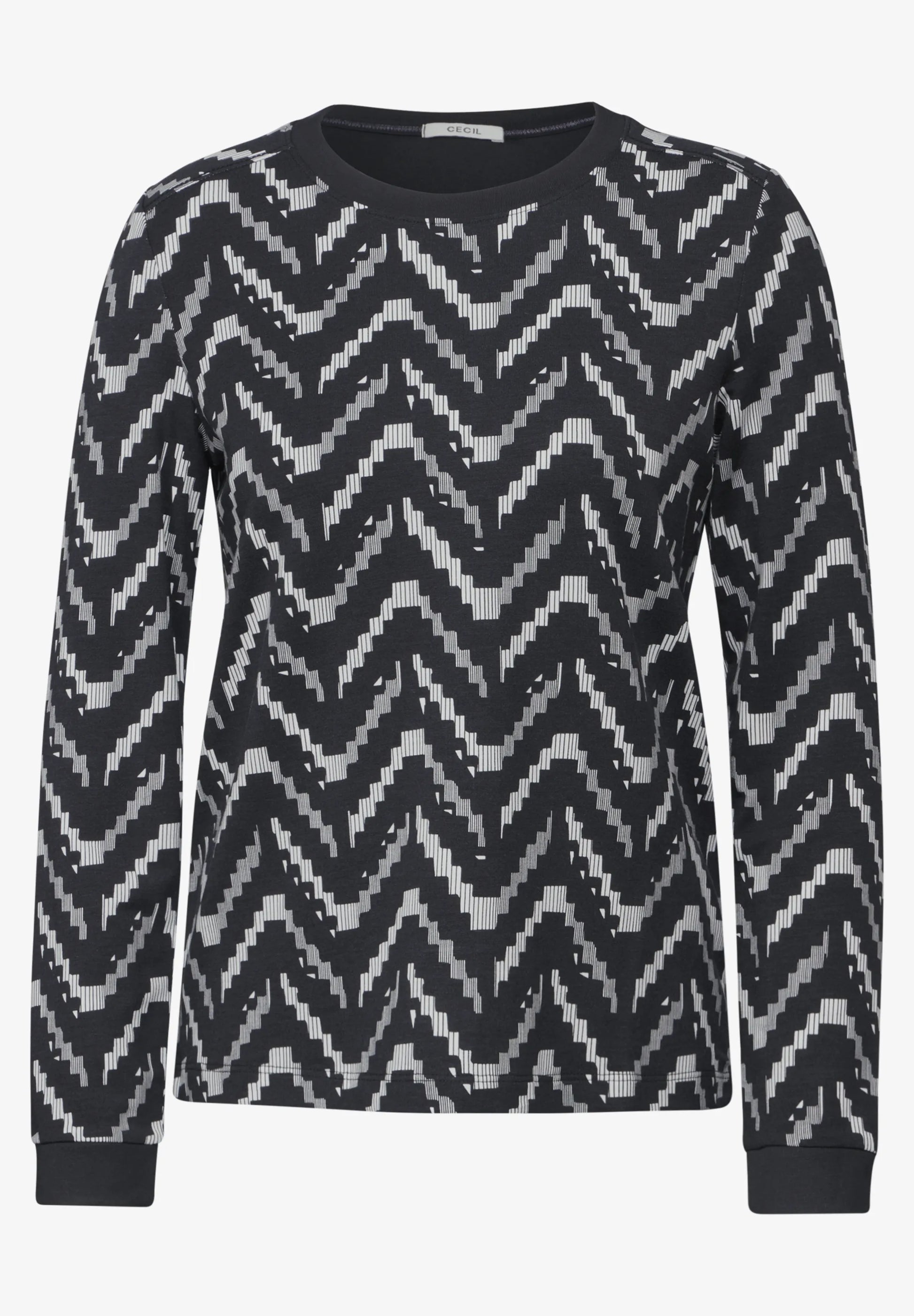 The printed Top by CECIL for women sets fashionable accents with its graphic pattern. The round neckline and the long sleeves with cuffs offer a comfortable fit, while the material mix with stretch content ensures high wearing comfort. A versatile women's shirt for every day.