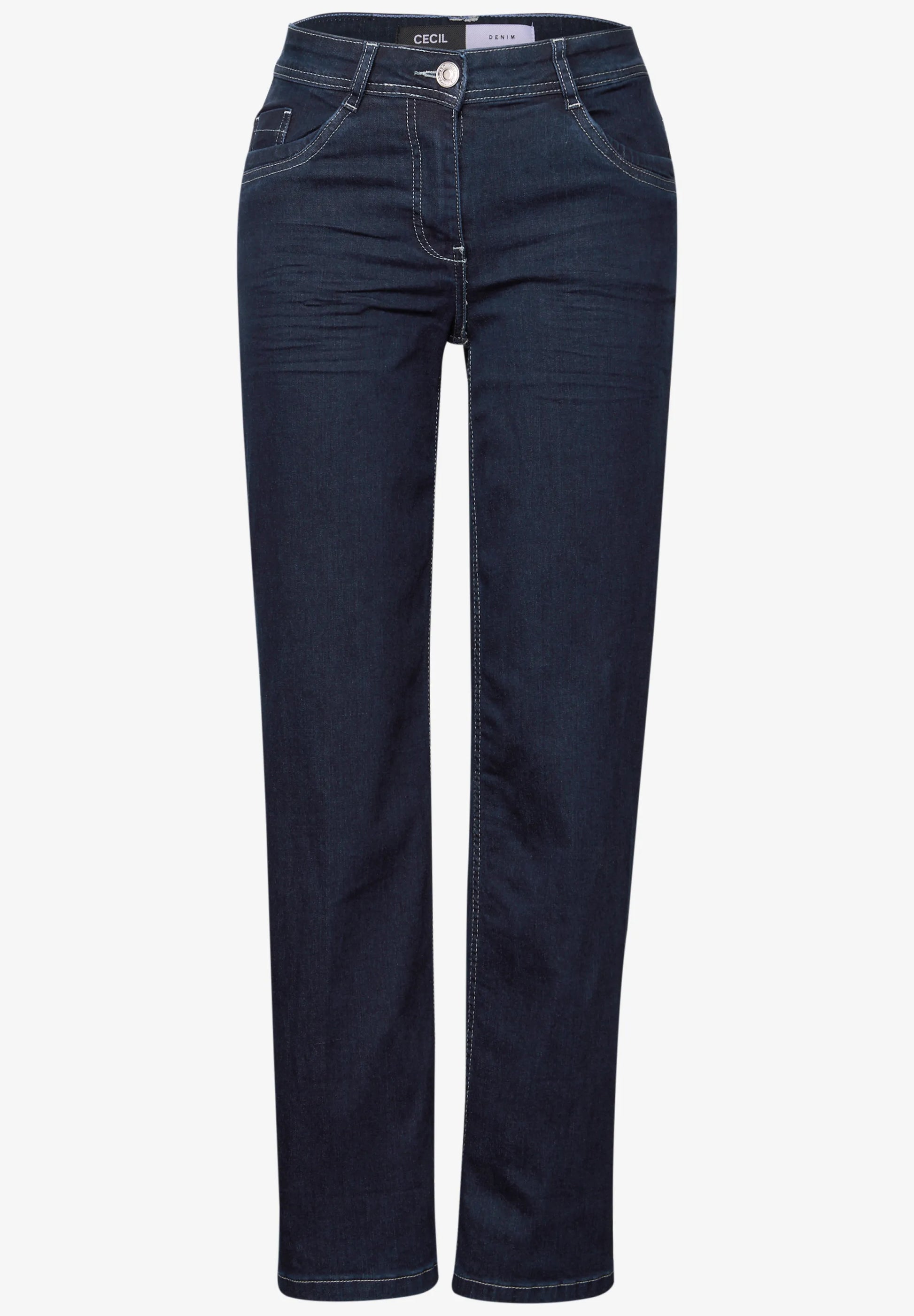 These women’s straight leg jeans by CECIL feature a classic rinsed wash and a comfortable fit. The high-rise waist and relaxed cut ensure ease of movement, while the straight-leg silhouette allows versatile styling options. Made from a soft, stretchy cotton blend, they are perfect for everyday wear.