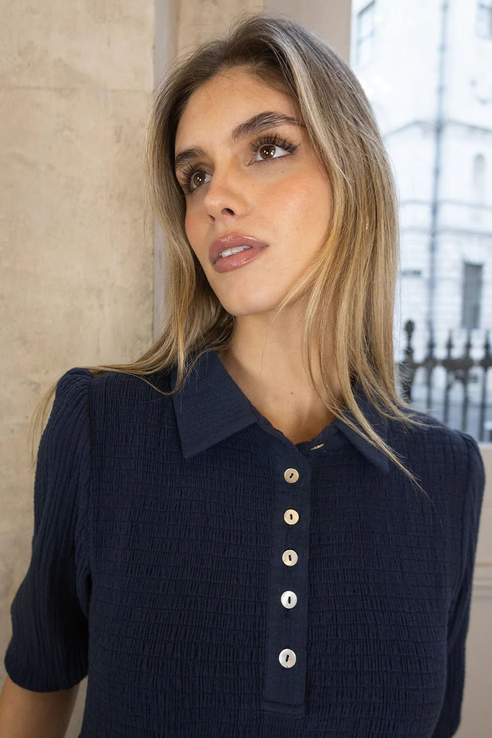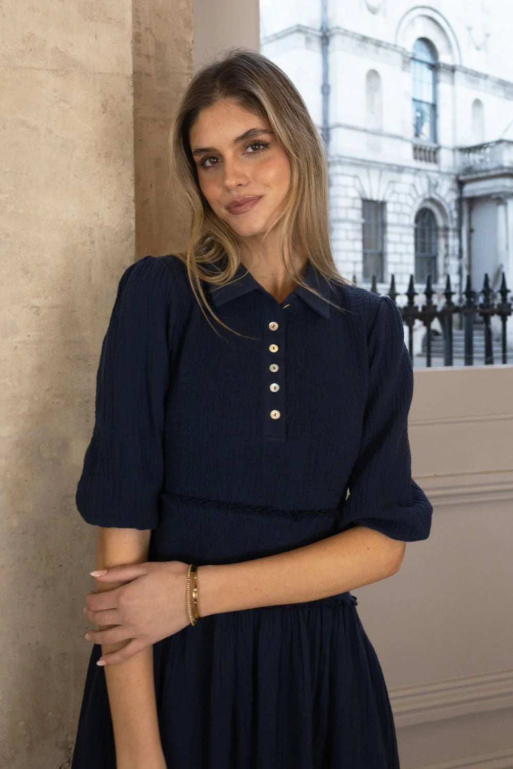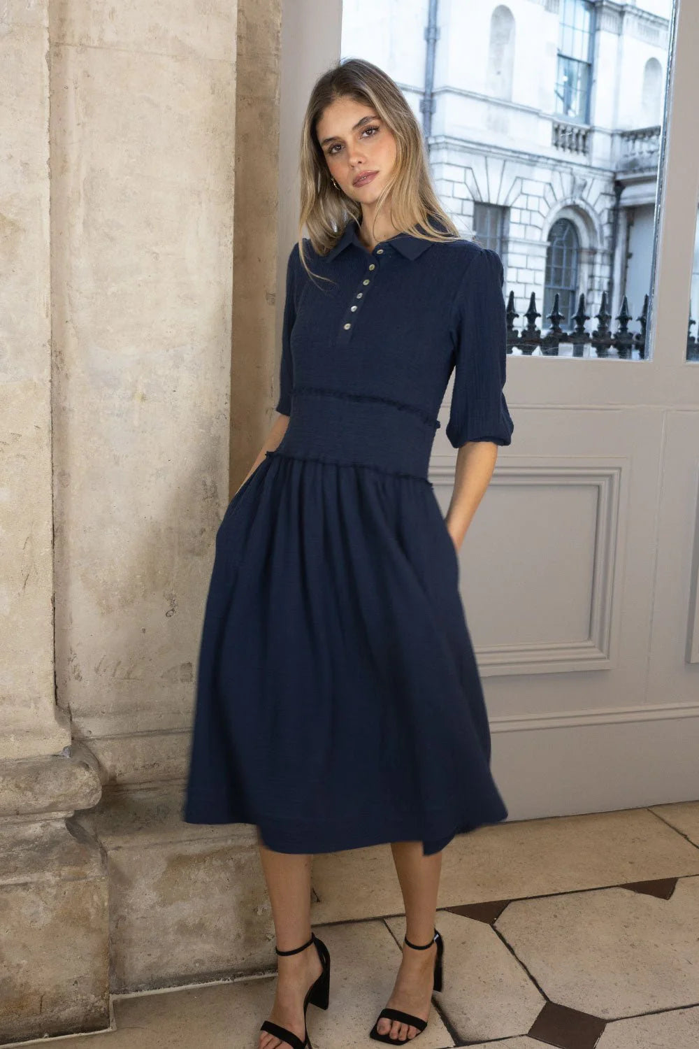 Introducing brand-new Sadie dress! Crafted from lightweight cheesecloth fabric, it's designed for minimal creasing and easy care—perfect for effortless styling. Featuring a puff sleeve, shirred bodice, buttoned placket, and handy side pockets, it’s your go-to piece for everyday wear.