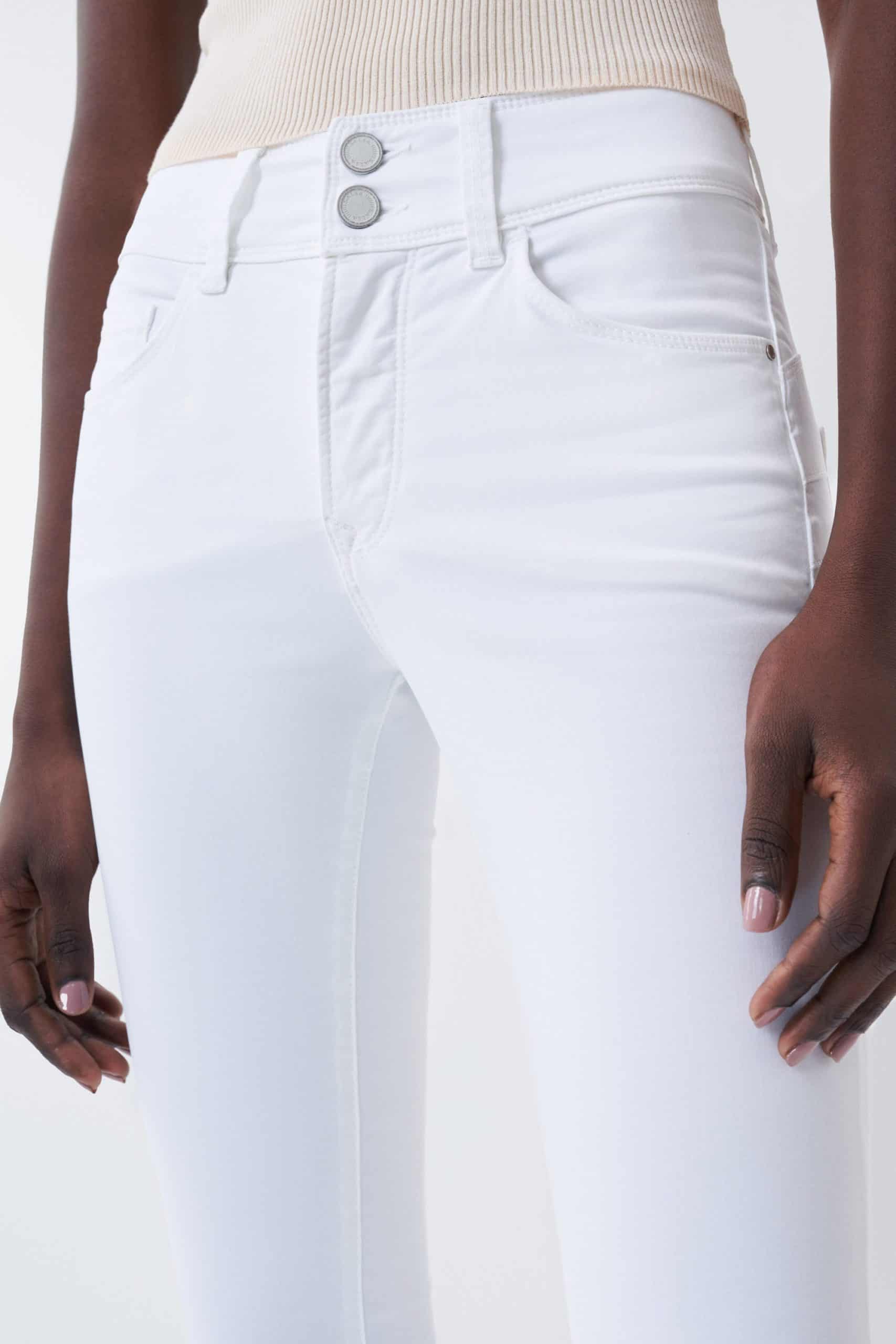 Push In Secret jeans from Salsa, with a skinny leg these salsa jeans will create a flat tummy effect and perfectly accentuate your curves. These jeans are high rise with two buttons in a beautiful soft fabric that is not see through. Great with runners for a casual look, with heels and a blazer for a night out.