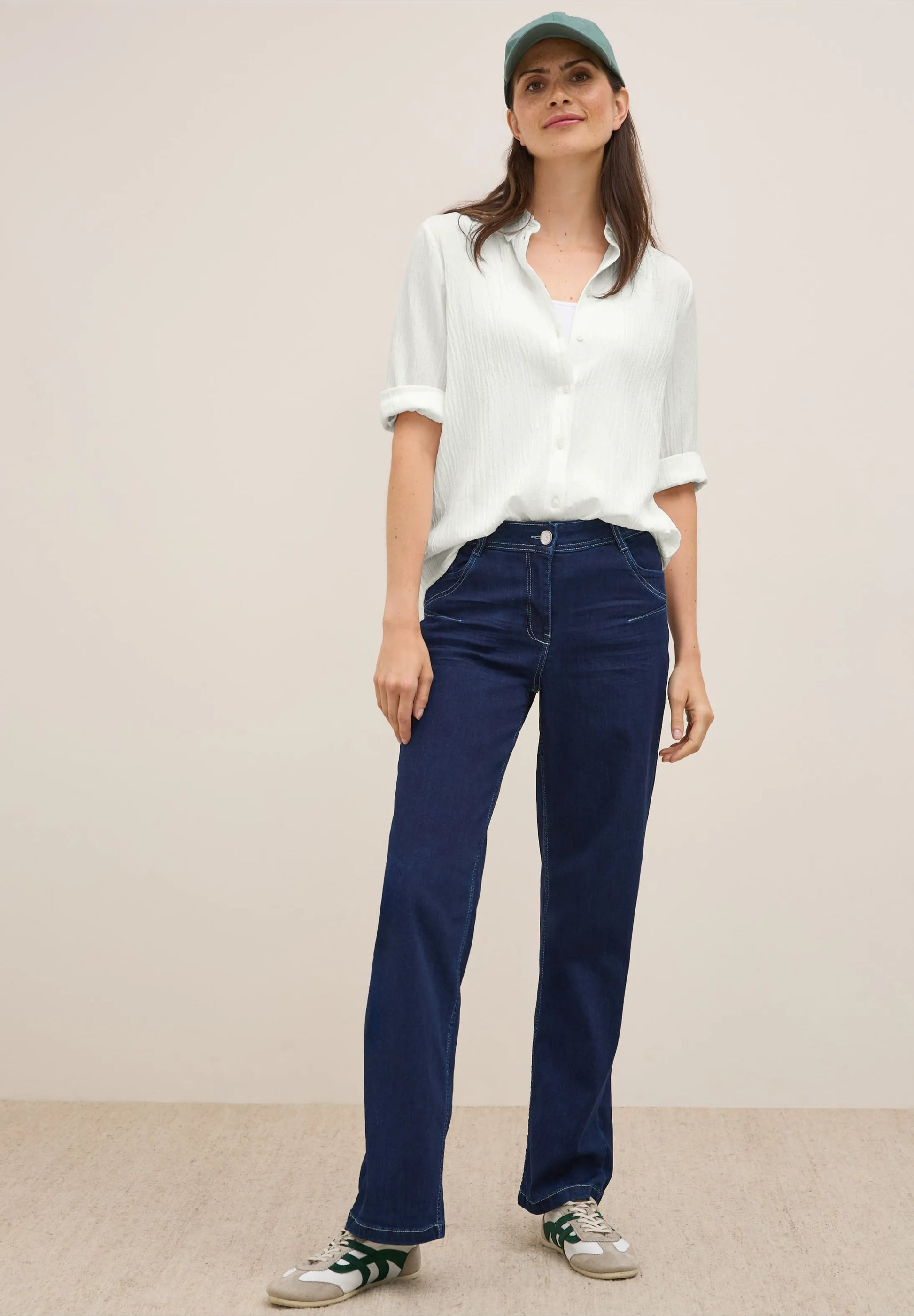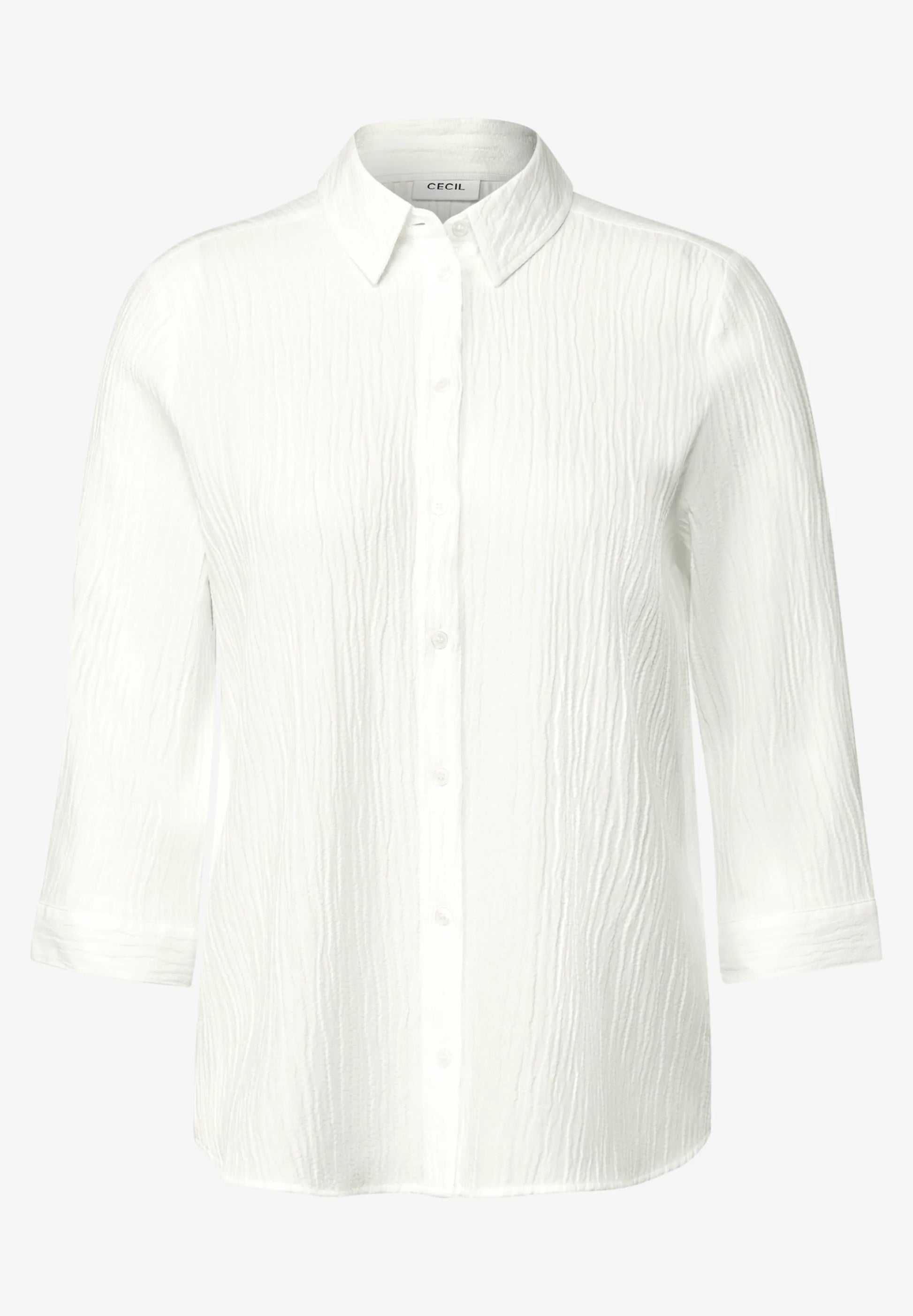 This structured shirt blouse by Cecil features a classic shirt collar, full button placket and 3/4 sleeves with a practical turn up – offering a smart yet relaxed look. Made from light seersucker fabric, it feels pleasantly airy on the skin. The rounded hem adds to the casual, easy going fit, making it perfect for warm days.