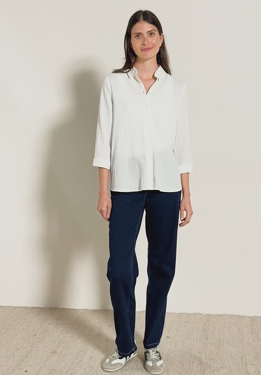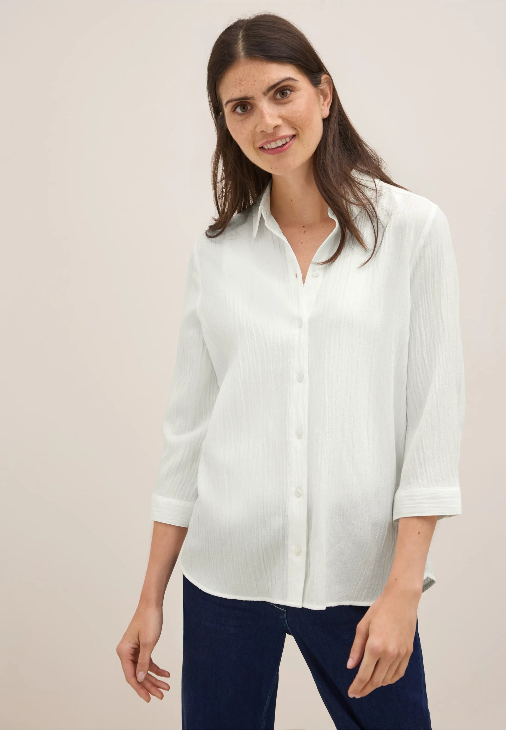 Shirt Blouse in Structured Seersucker, Vanilla White