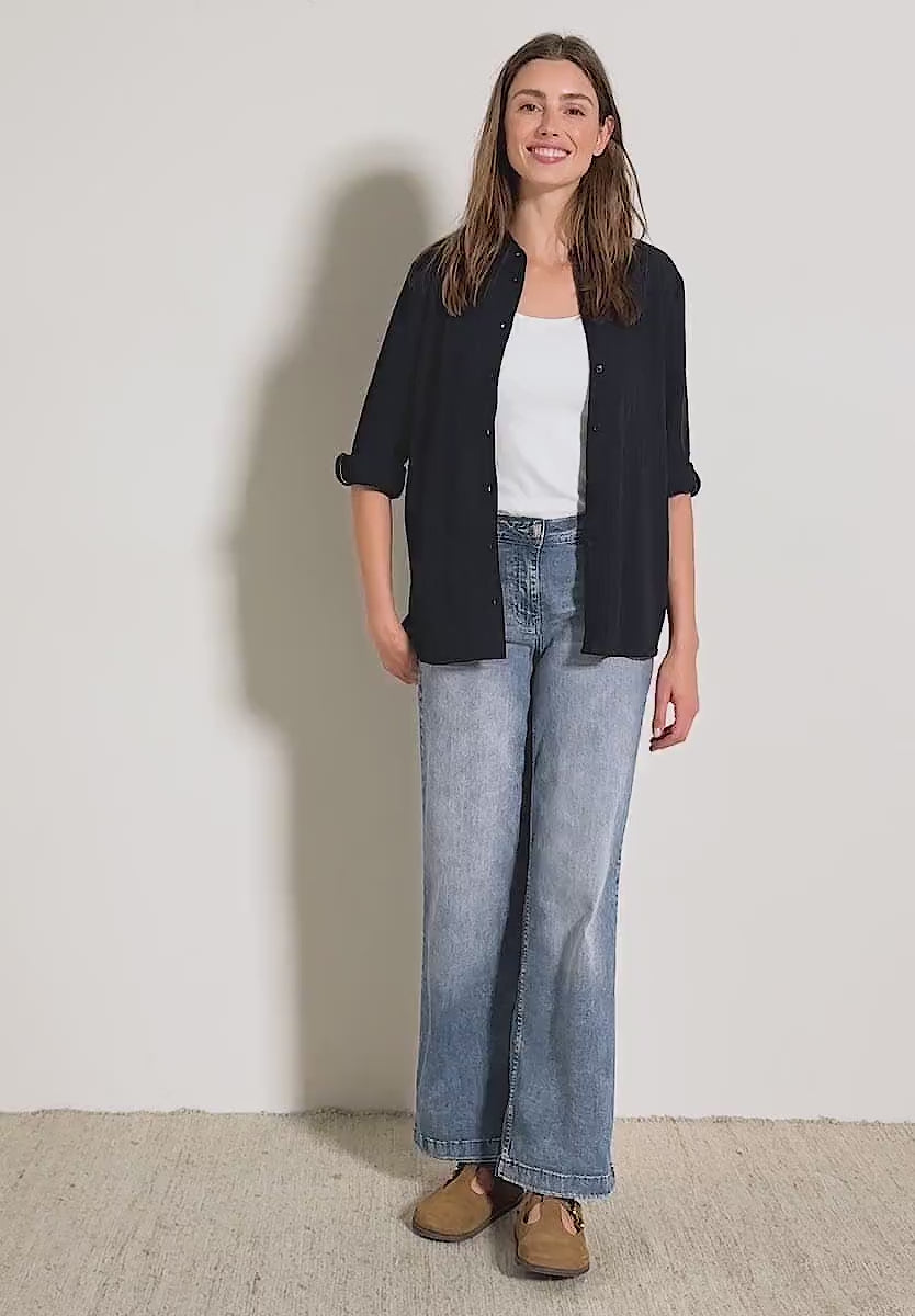 Shirt Blouse in Structured Seersucker, Dark Blue