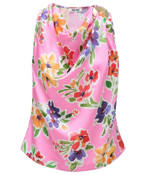 Elegant and sophisticated, this sleeveless top features a soft draped neckline and a statement gold-tone ring detail on the shoulder. Crafted from a lightweight fabric with a smooth finish, it's perfect for both smart and casual looks. Style it with tailored trousers or a skirt for a polished ensemble.