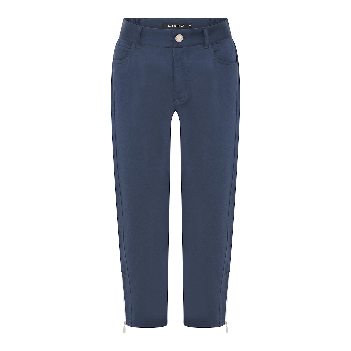 Effortlessly stylish and comfortable, these slim fit capri trousers feature a flattering mid-rise waist and zip details at the hems. The stretch fabric ensures all-day ease, making them perfect for both smart and casual looks.