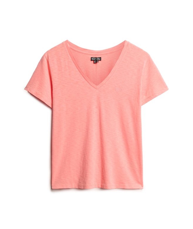 Slub Embroidered V-Neck T-Shirt, Peach Amber Pink
