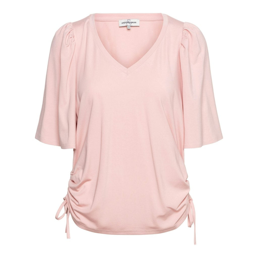 This V-neck top by &Co Woman is crafted from soft jersey for a comfortable, flattering fit. It features short sleeves with subtle gathers at the shoulders and adjustable drawstrings at the side seams, allowing you to create a gently ruched look. Easy to pair with trousers, skirts or jeans - a versatile piece for relaxed yet feminine outfits.