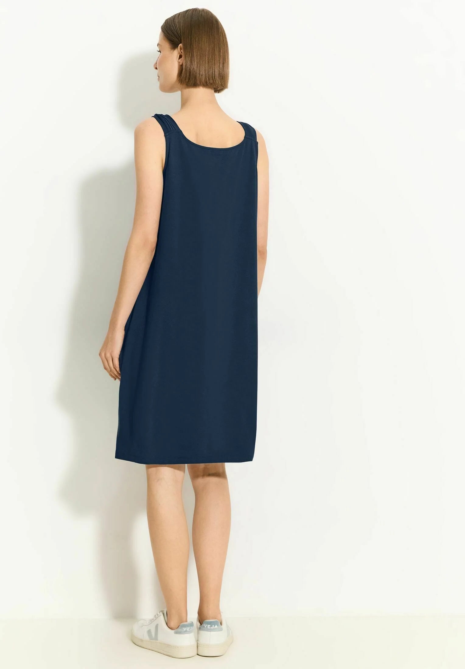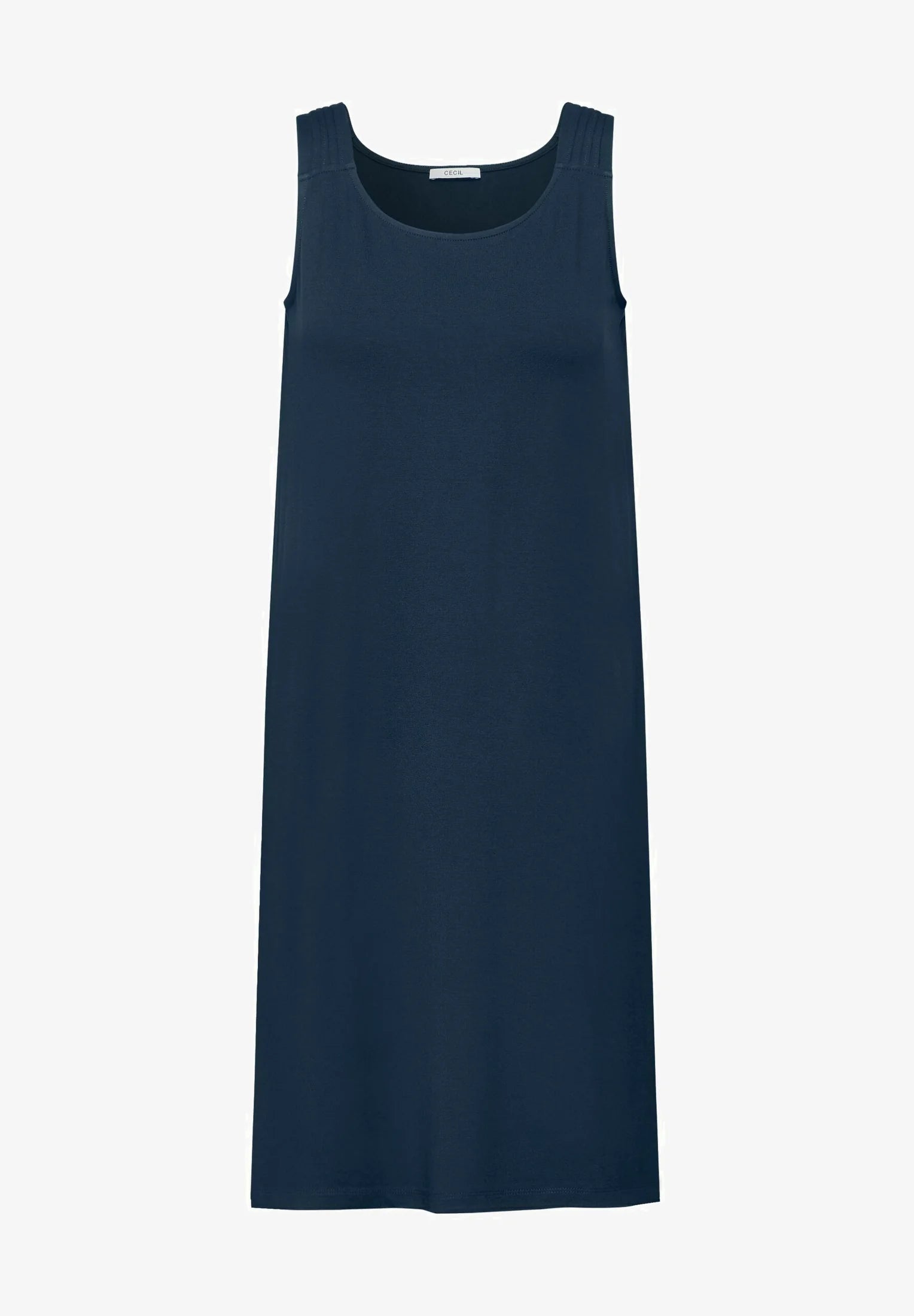 Step into everyday style with this solid jersey dress by CECIL – crafted from a soft stretch fabric for a comfortable fit. Cut in a flattering A-line silhouette, it features subtle stitching detail on the straps for a refined finish. An effortless choice for warm days or casual layering.