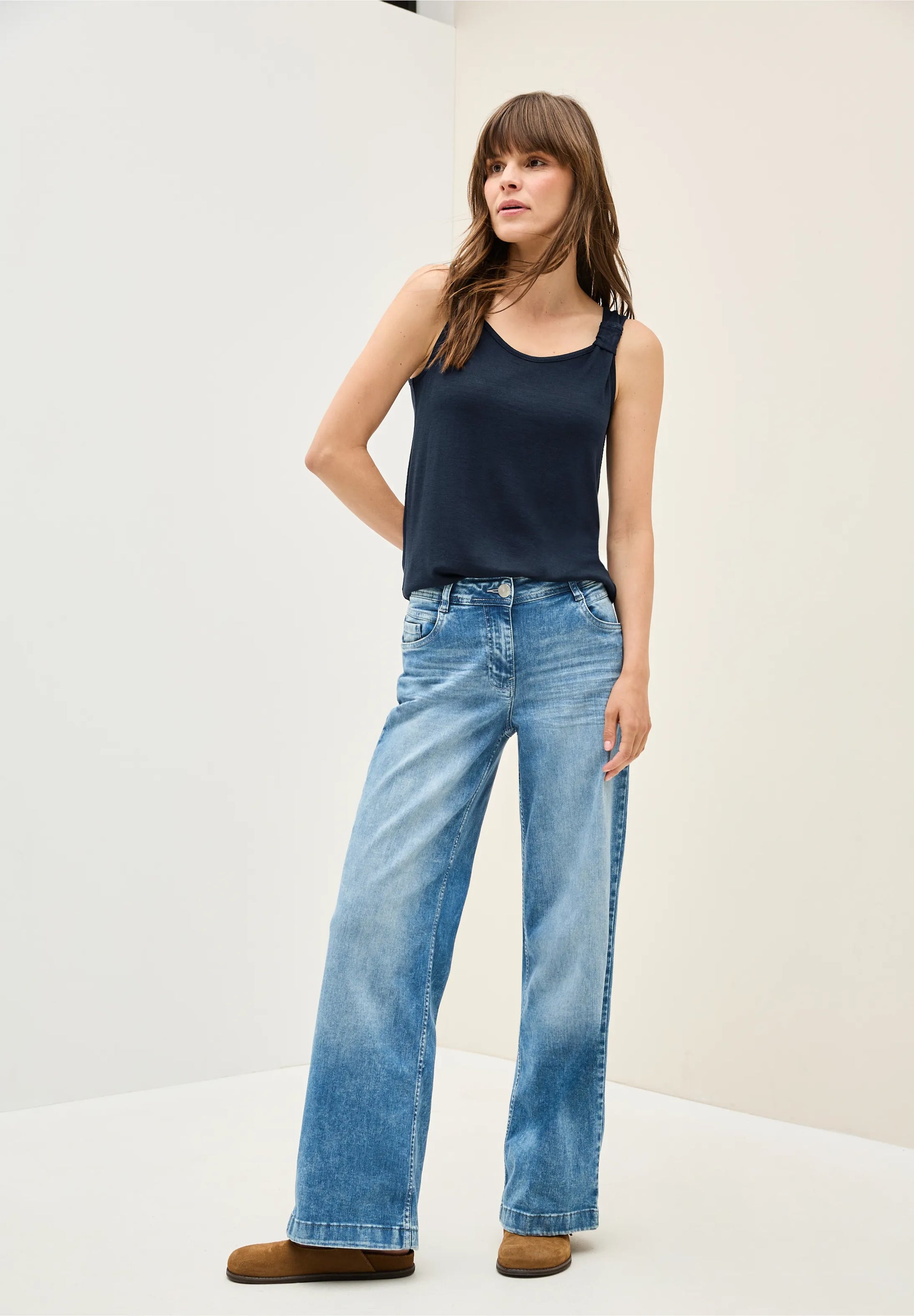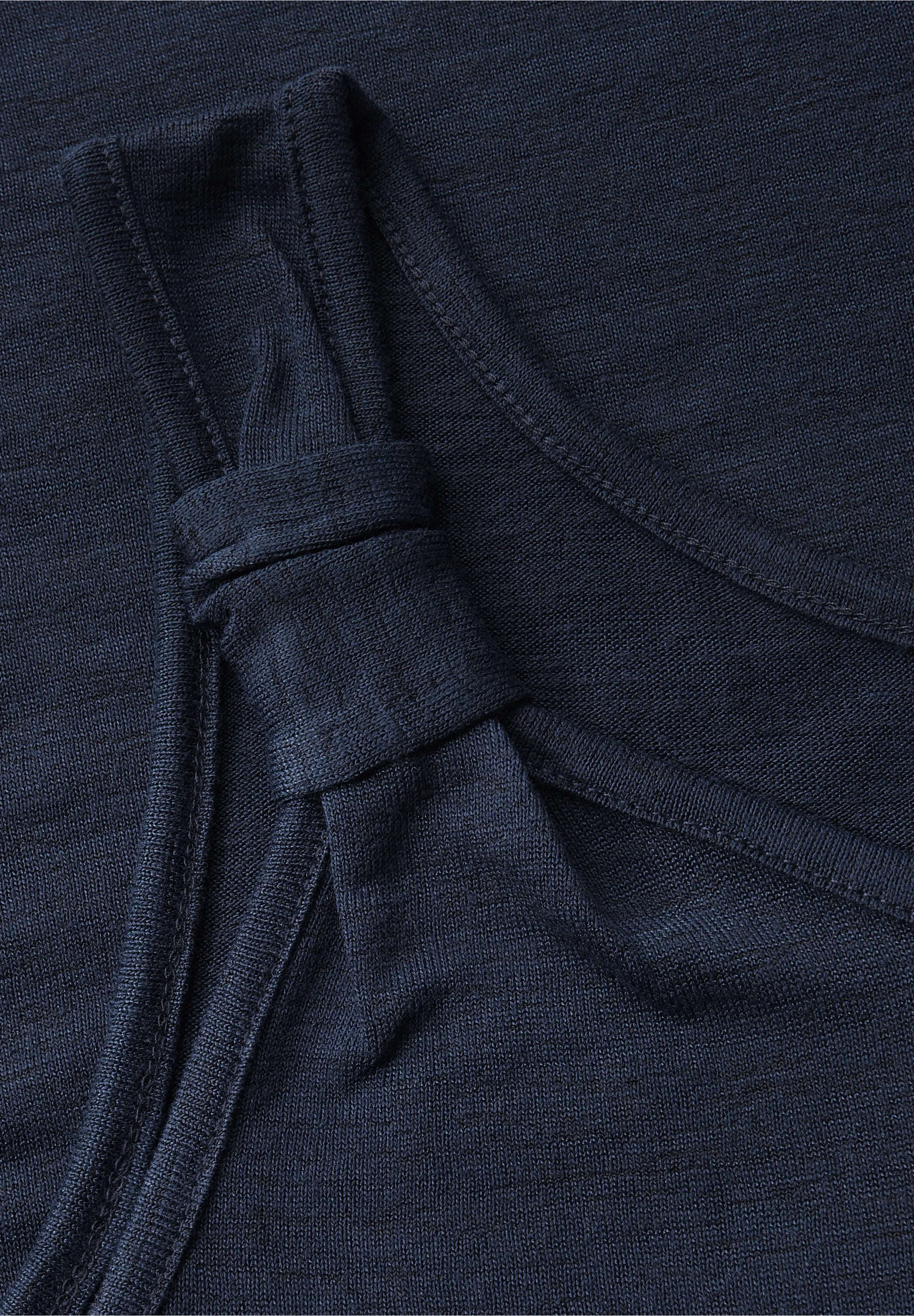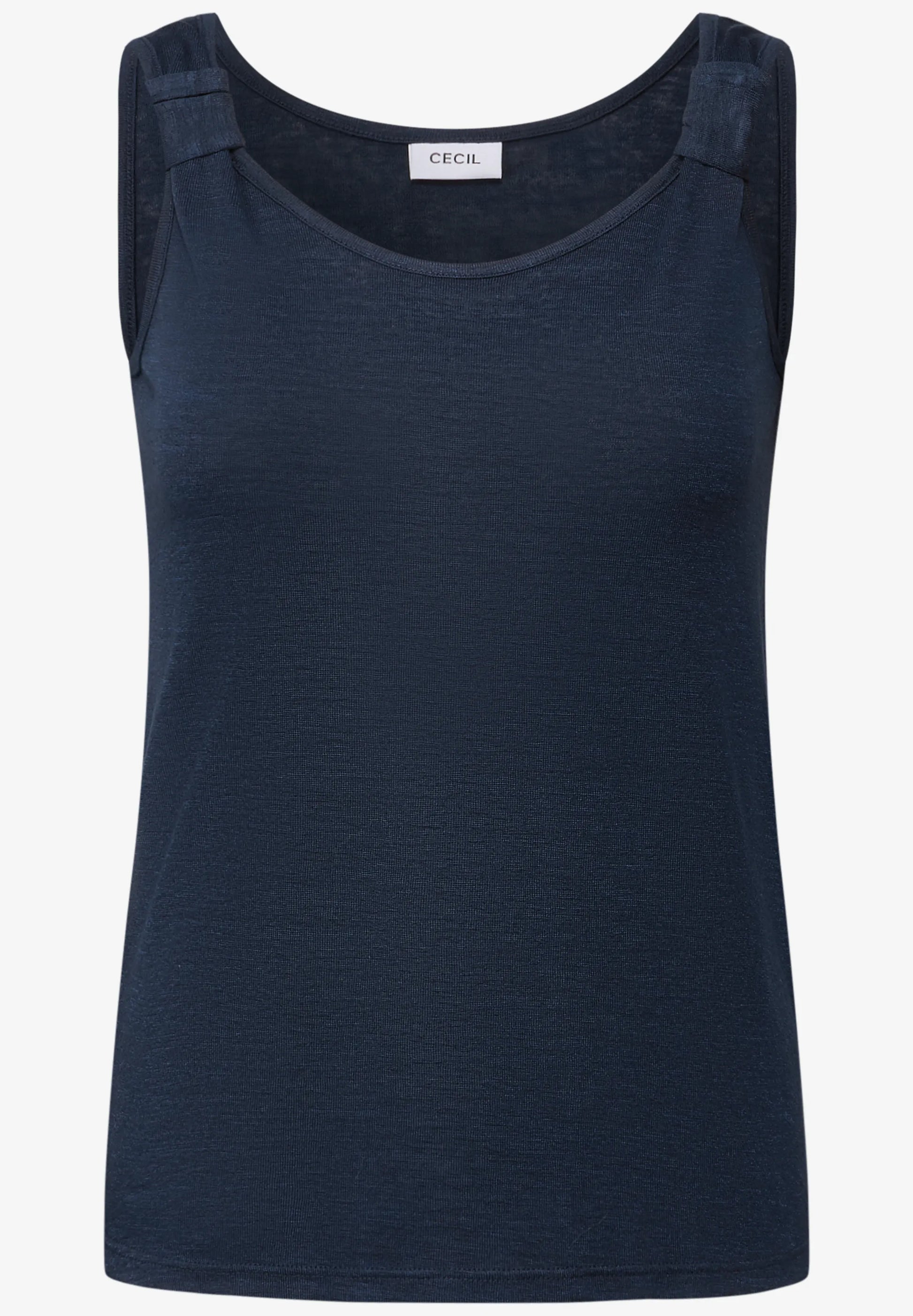 This strap top by CECIL stands out with its distinctive knitted look and stylish knot detail on the straps. Sleeveless and made for comfort, it’s the perfect choice for warm days and laid-back summer outfits. A casual must-have that combines ease with a touch of texture.