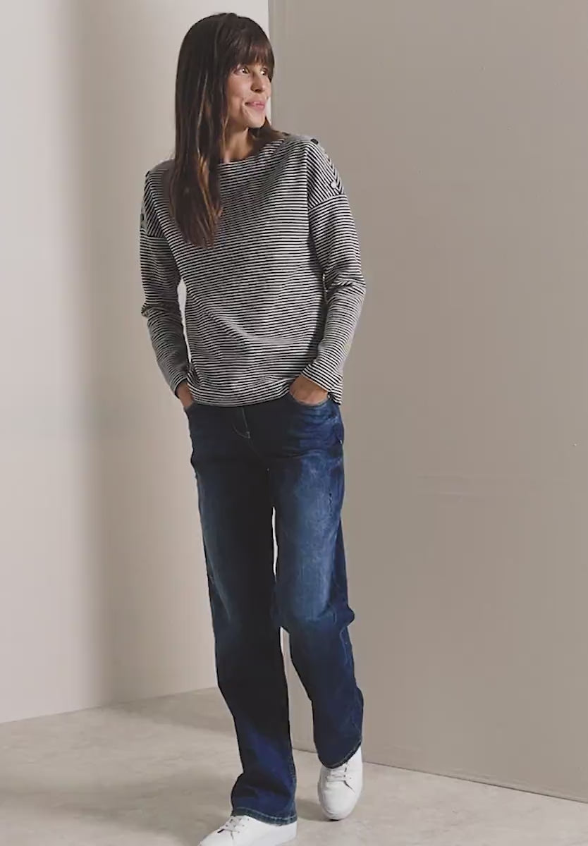 This long-sleeved top by CECIL for women impresses with a boat neckline and button details on the shoulders. The striped pattern and the material mix with stretch content give it a casual appearance. Ideal for a sporty-elegant look.