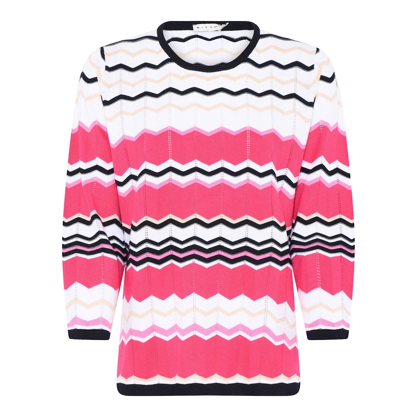 This lightweight knit jumper features a bold stripe design and a soft, breathable viscose blend. Finished with a round neckline and comfortable fit, it’s perfect for adding a touch of texture and colour to your everyday wardrobe. Ideal for layering from season to season.