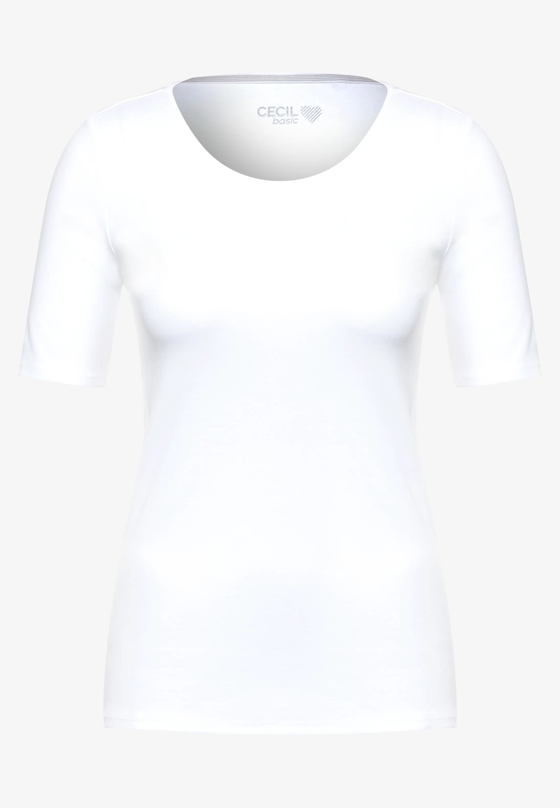 Feminine women's T-shirt in the style Lena by CECIL. It shows up with a round neckline and in a fresh plain color. A new basic top that is great for combining.