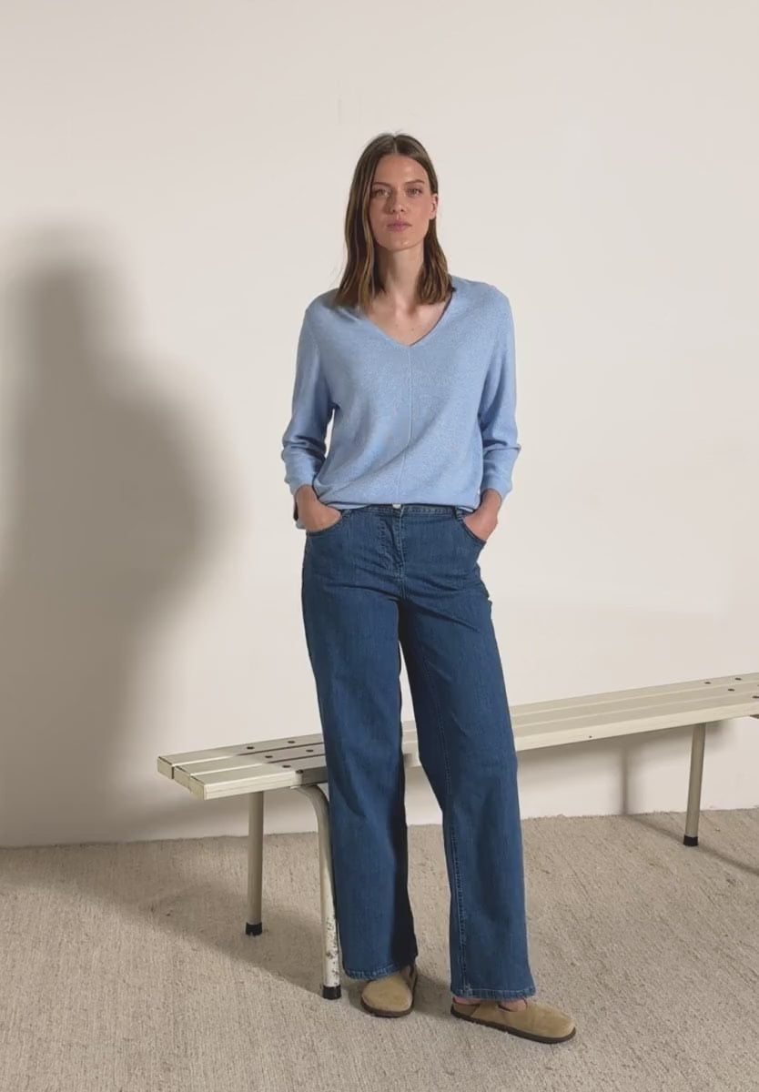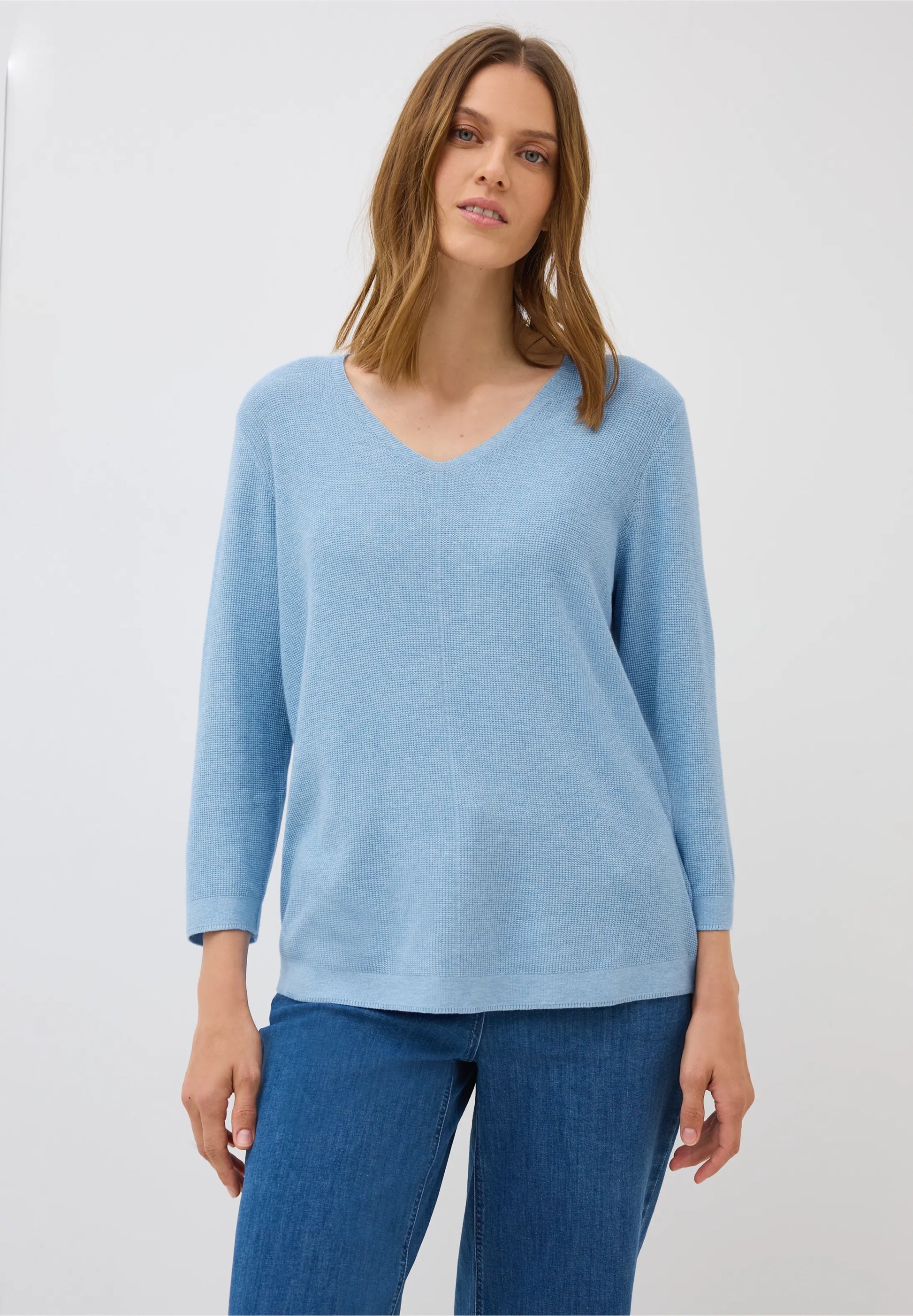 This lightweight sweater by CECIL features a flattering V-neckline and 3/4 sleeves for an effortless, feminine look. Made from soft, textured knit fabric, it offers a cosy yet breathable feel - perfect for relaxed, everyday outfits with a stylish touch. Pair it with jeans, joggers or tailored trousers for versatile comfort.