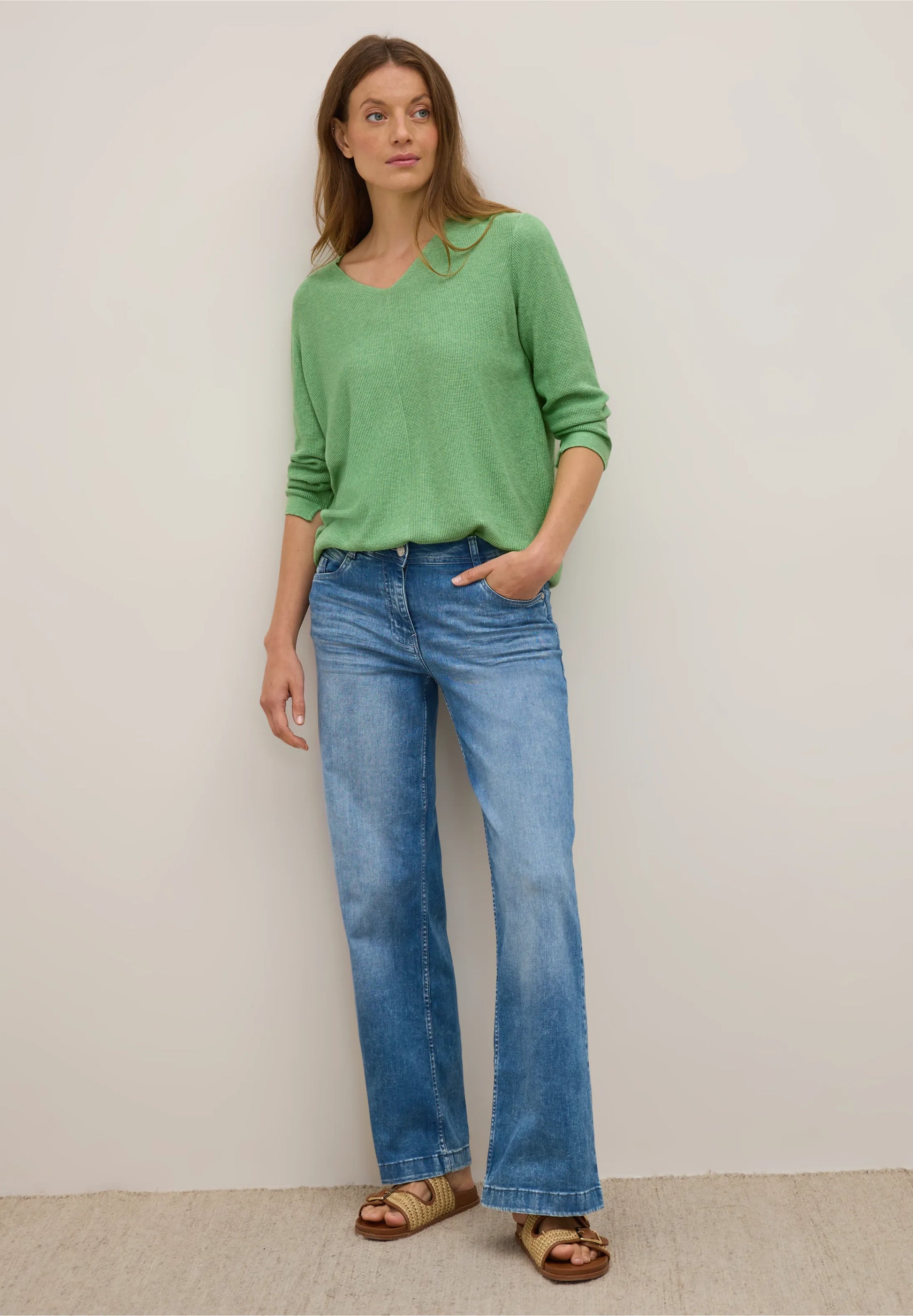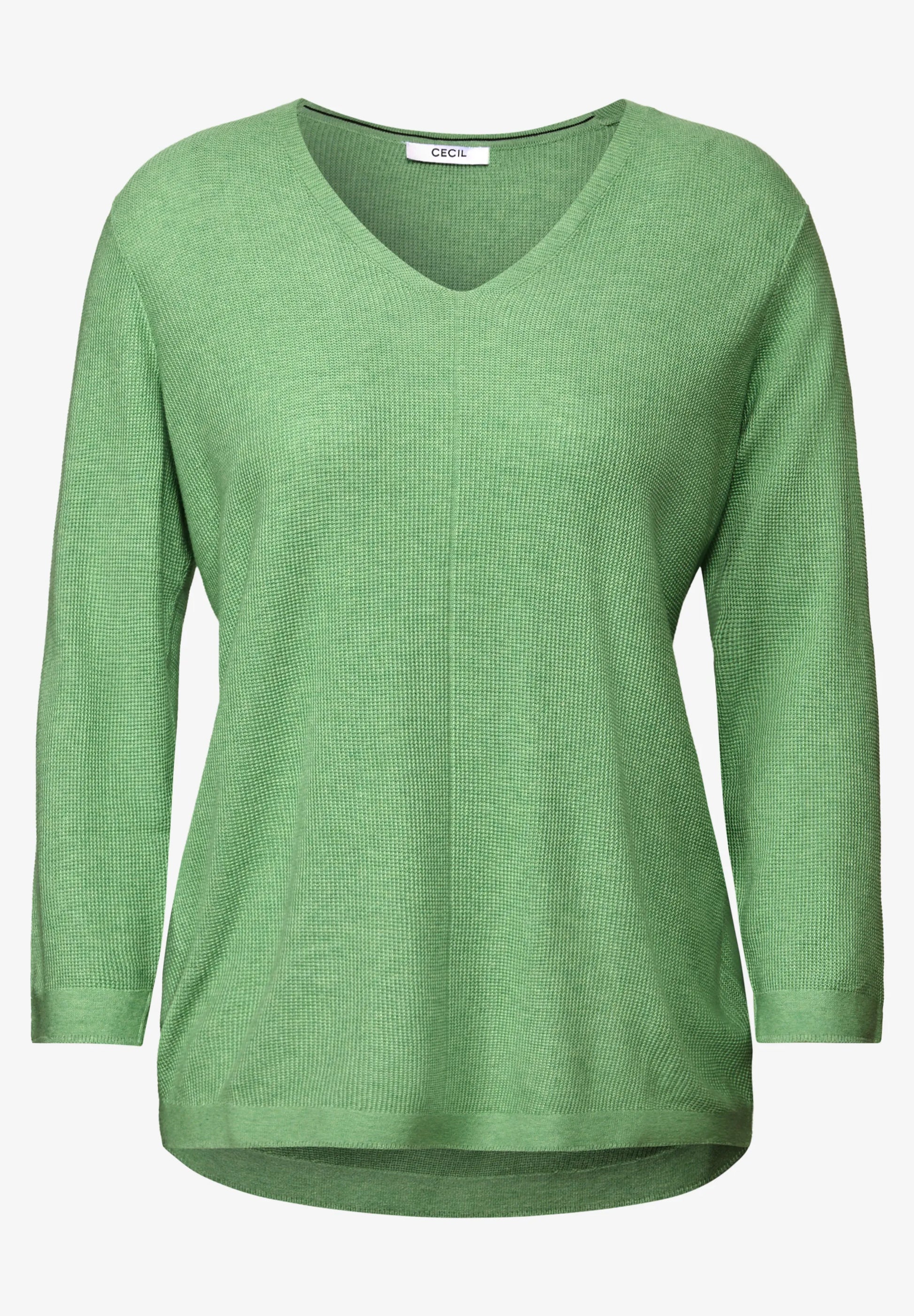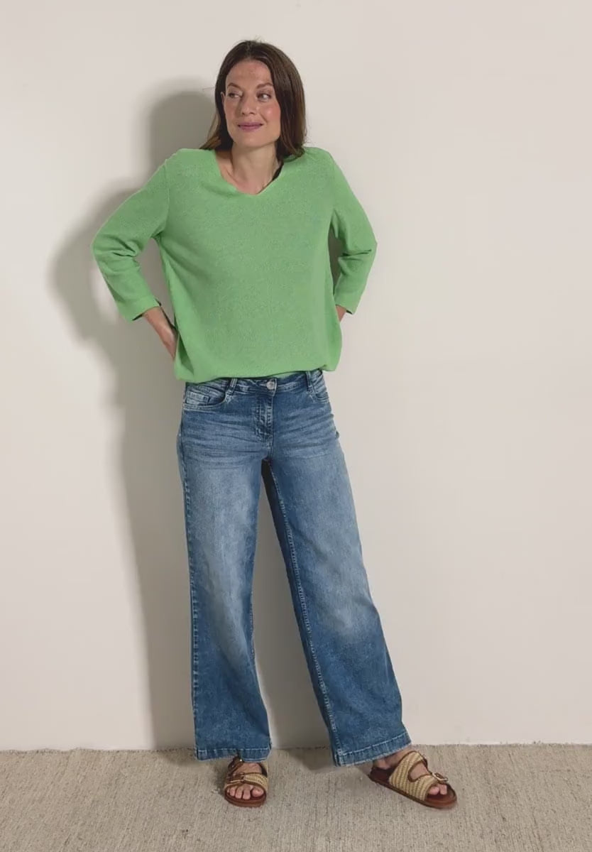 This lightweight sweater by CECIL features a flattering V-neckline and 3/4 sleeves for an effortless, feminine look. Made from soft, textured knit fabric, it offers a cosy yet breathable feel - perfect for relaxed, everyday outfits with a stylish touch. Pair it with jeans, joggers or tailored trousers for versatile comfort.