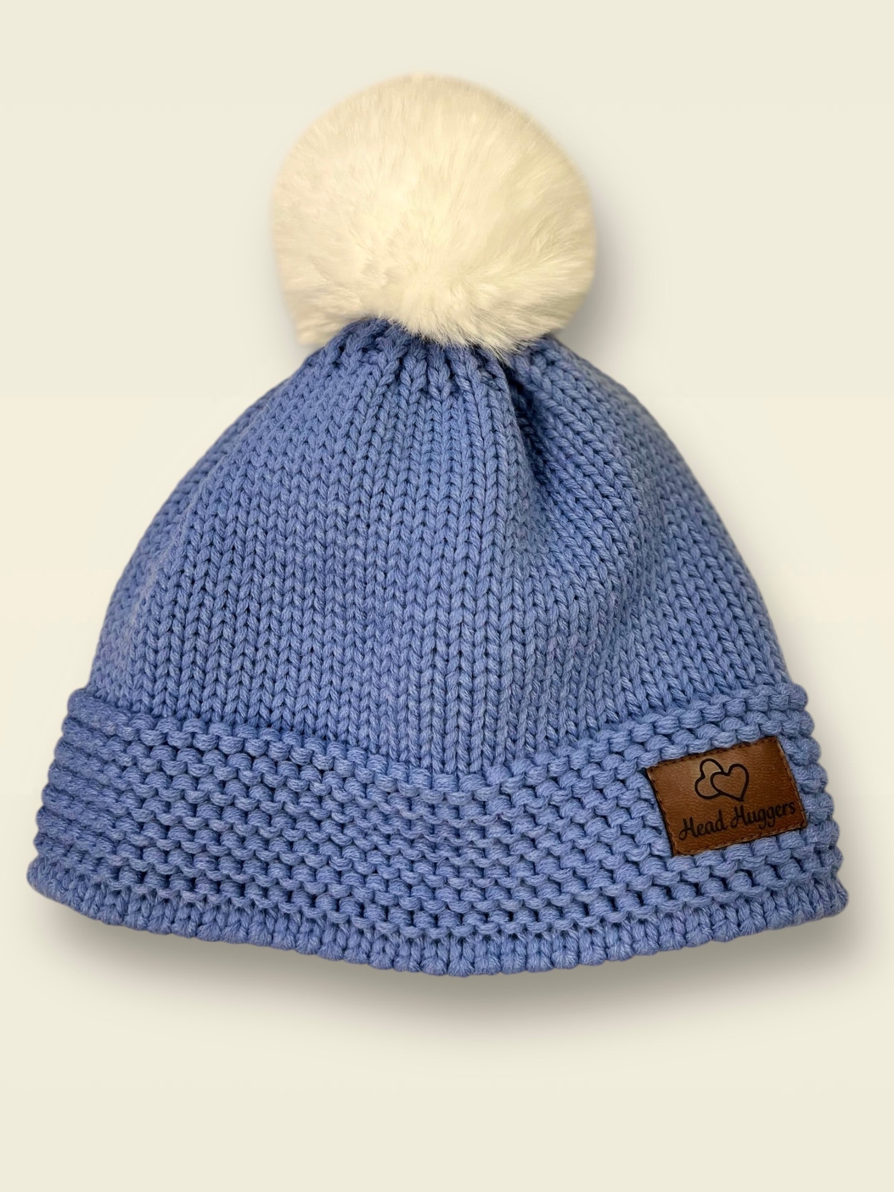 The Head Huggers Hat with Cream Pom-Pom, Dusty Blue