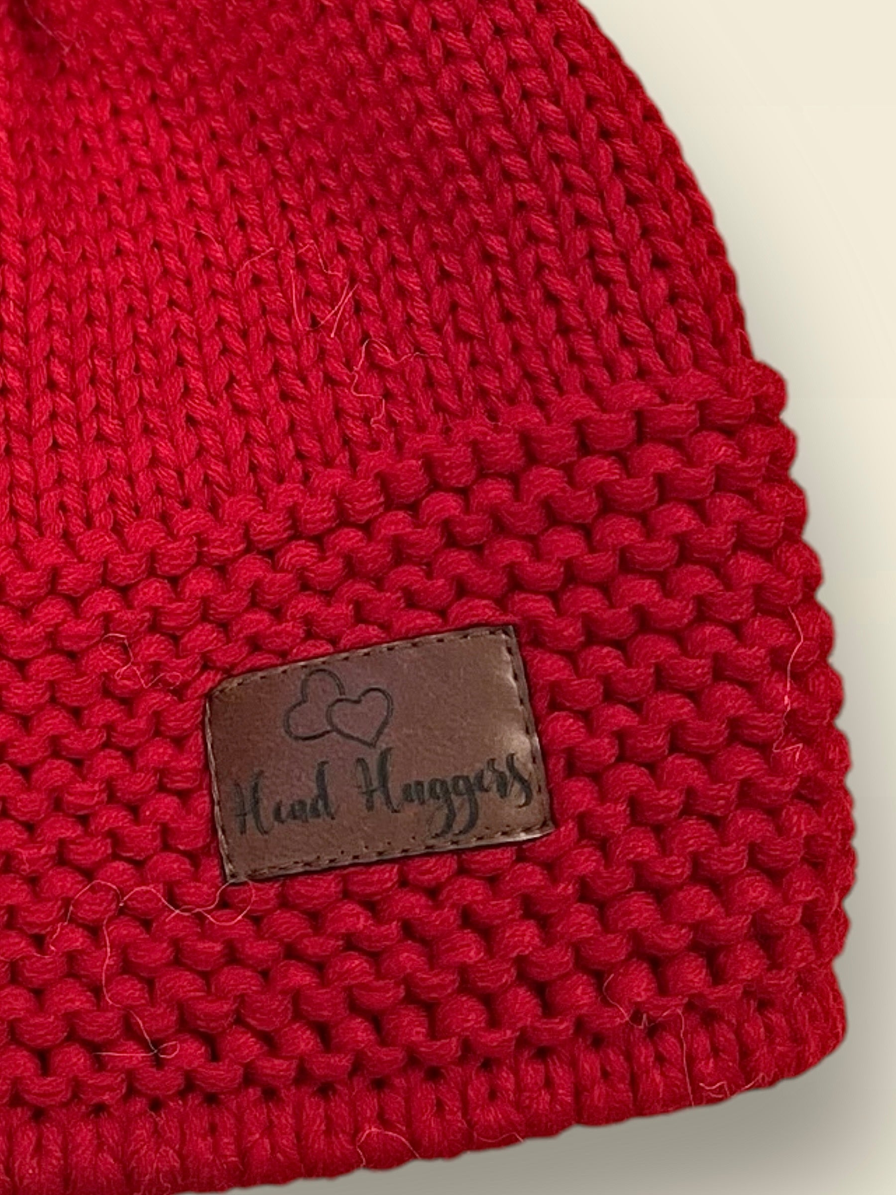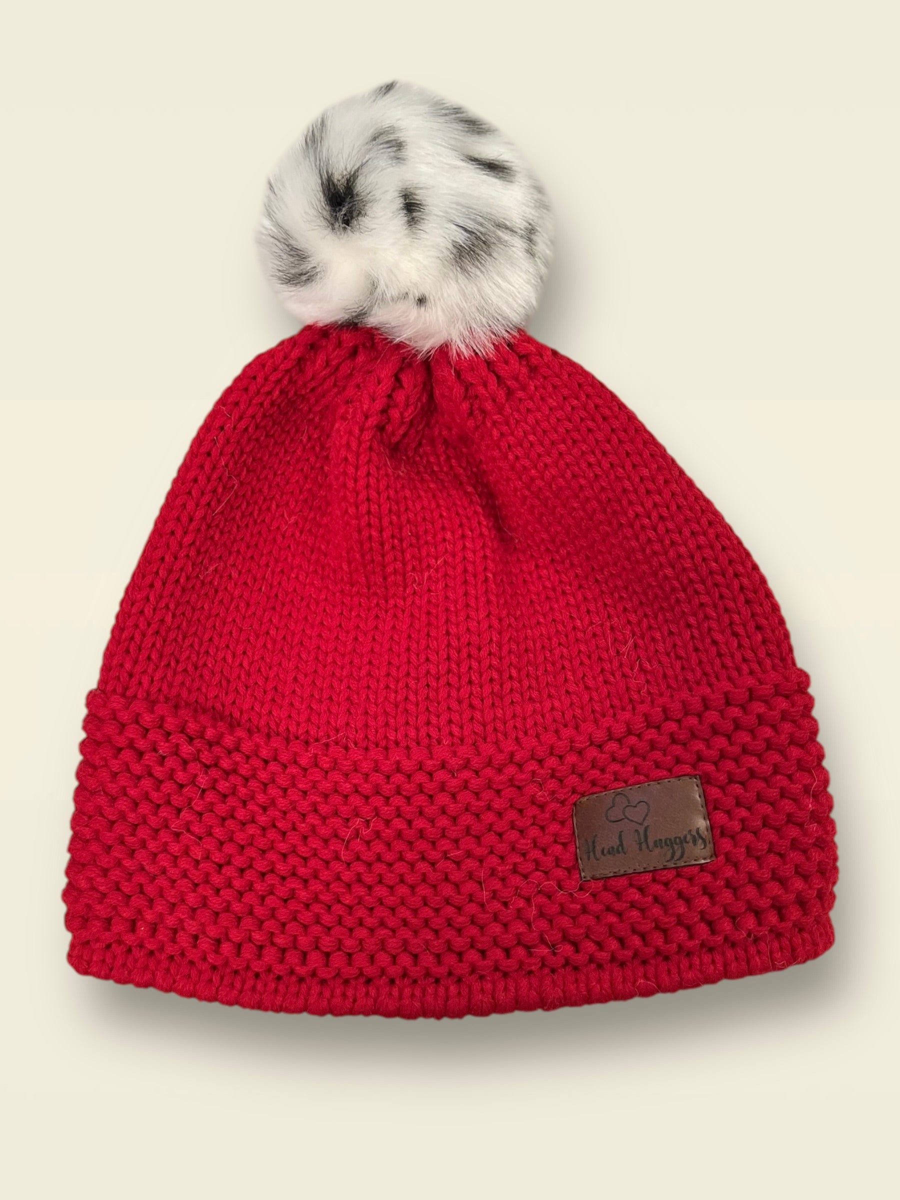 The Head Huggers Hat with White and Black Spotted Pom-Pom, Red