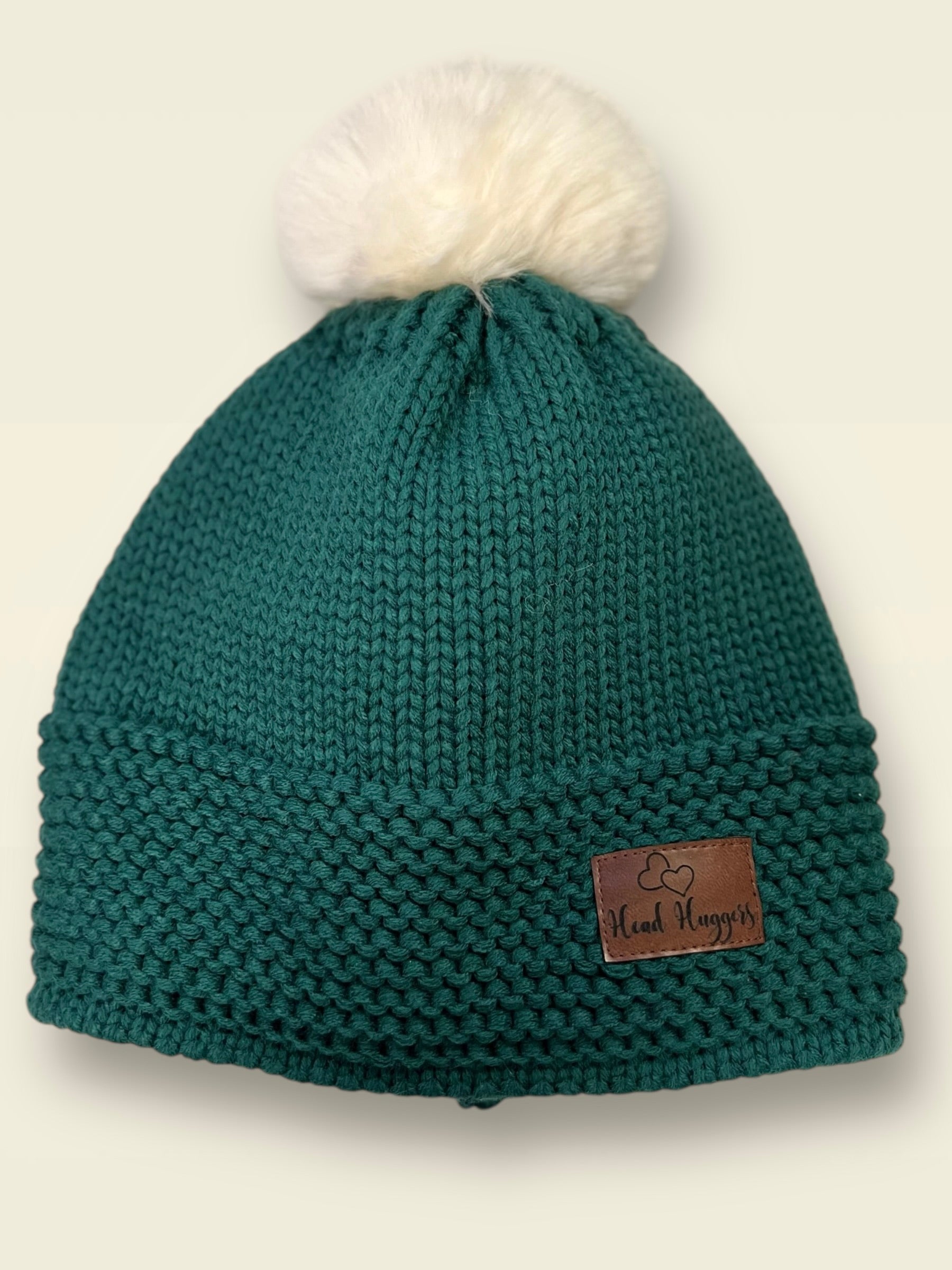 The Head Huggers Hat with Cream Pom-Pom, Emerald Green