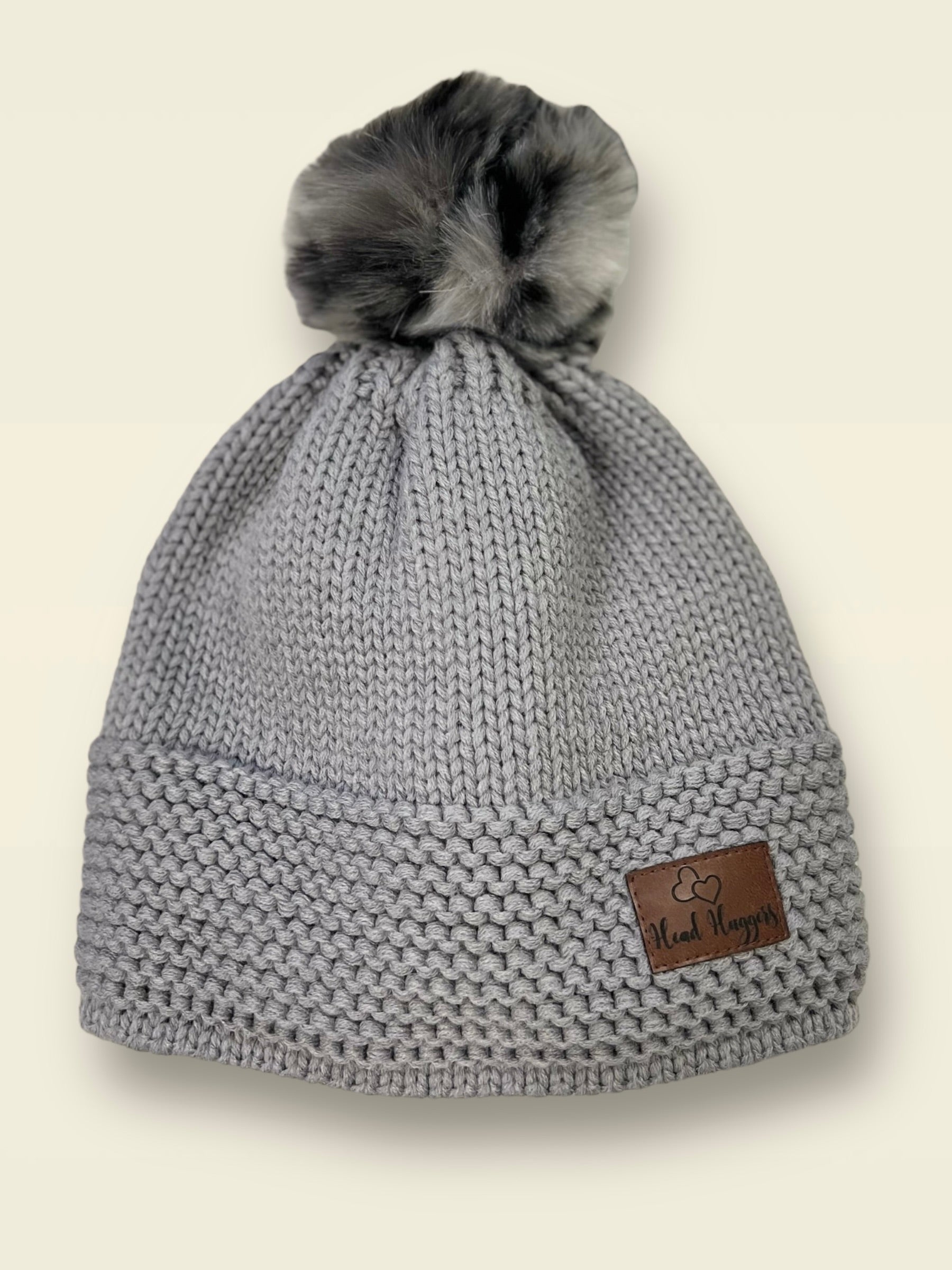 The Head Huggers Hat with Spotted Grey Pom-Pom, Light Grey