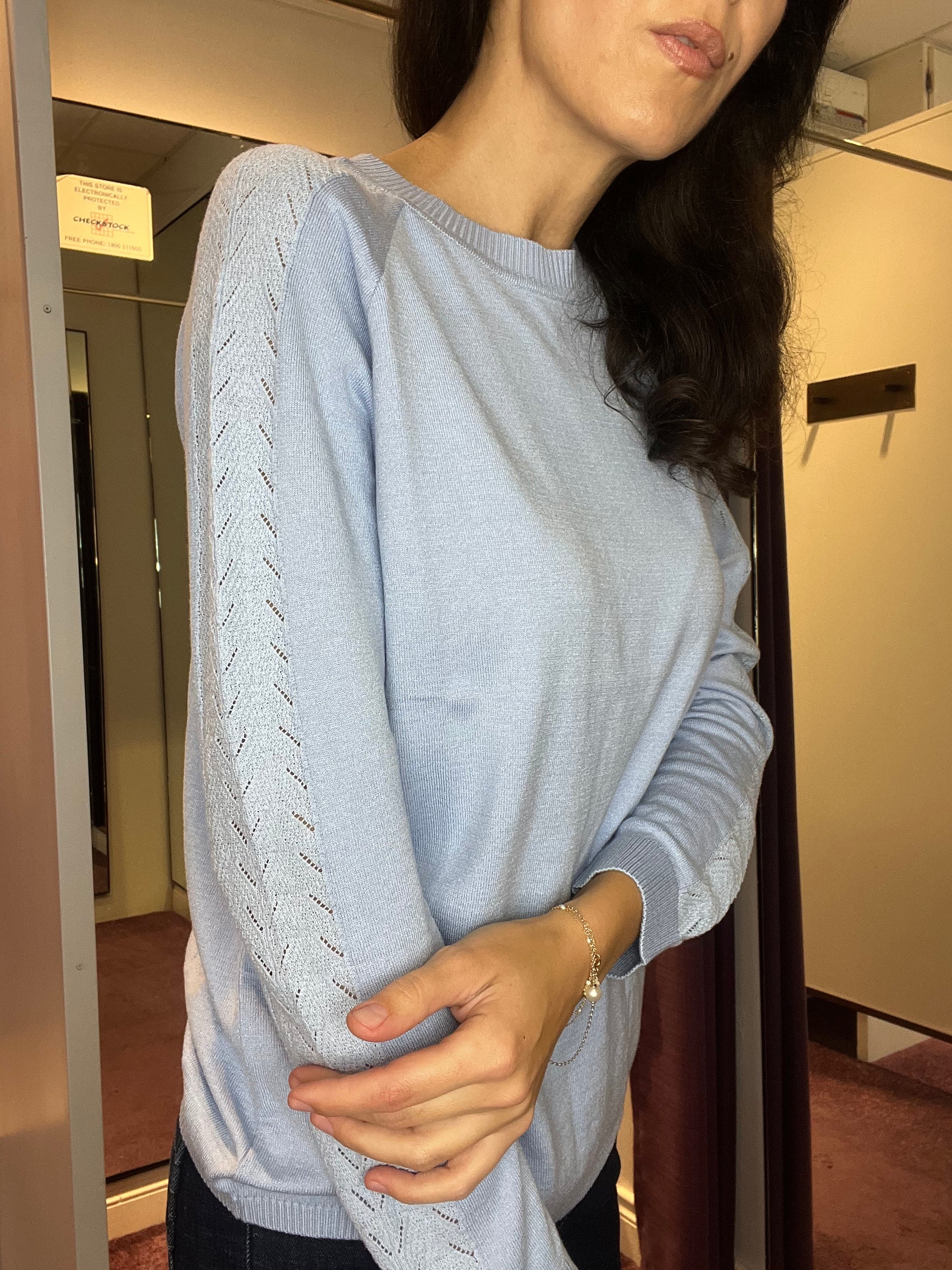 The Verona Knit debuts in our luxurious viscose blend, featuring raglan sleeves adorned with a delicate crochet design. This combination creates an effortlessly chic look that's perfect for everyday wear.