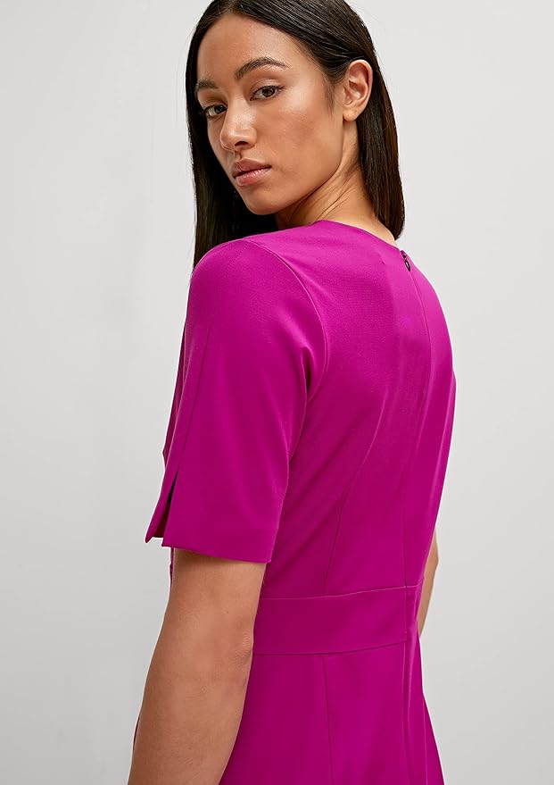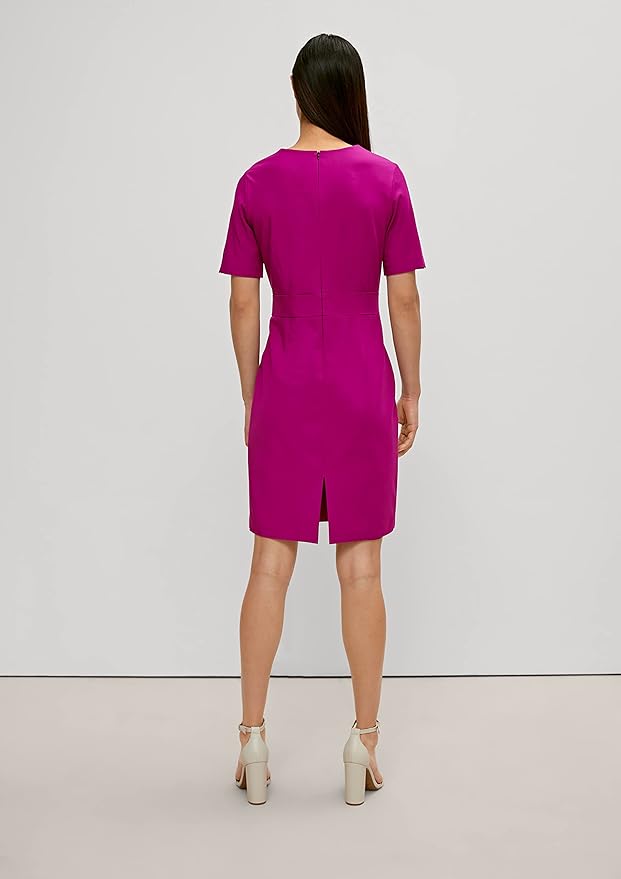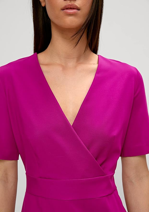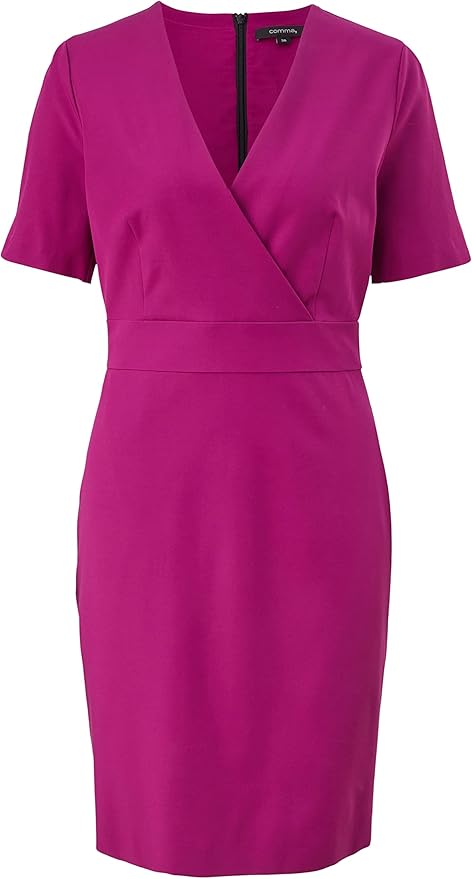 This elegant pencil dress features a flattering wrap-effect bodice and a defined waistband – creating a graceful silhouette that’s both feminine and polished. With short sleeves and a knee-length cut, it’s ideal for both office wear and special occasions. A timeless piece for a confident, refined look.